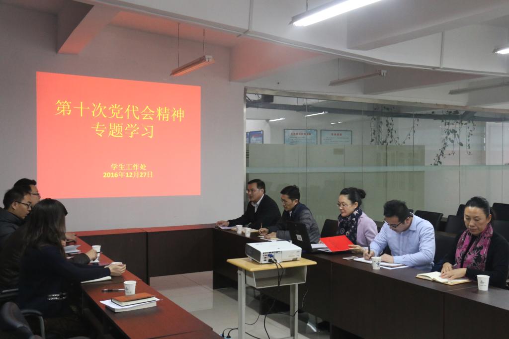 12月27日下午,学生处在崂山校区学生事务发展中心会议室召开会议专题学习中国共产党伟德国际1949官网第十次代表大会精神,全体成员参加了学习活动。