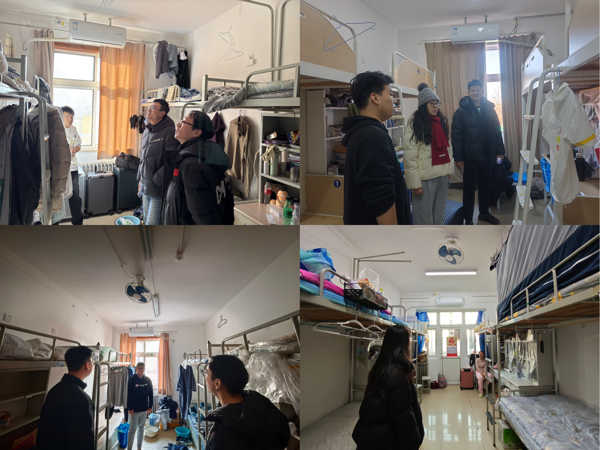 每到一间宿舍,老师们都与留校或正准备离校的同学进行亲切交流。走访过程中,贾建闯详细询问同学们的返乡时间、车票购买、行程安排等情况,反复叮嘱大家:离校前务必认真整理好个人物品,妥善保管好贵重财物;离校时务必做到“三清三关”(清走道、清阳台、清床铺,关水、关电、关门);返乡途中务必注意交通安全、人身与财产安全,保持通信畅通,及时向家人和老师报平安。他特别提醒同学们要增强防范意识,警惕各类诈骗信息,确保平安顺利返家。