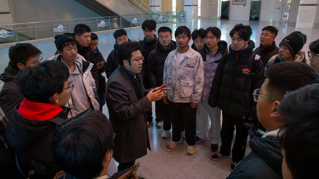 步入海军博物馆主展馆,带队老师于超以海军博物馆的珍贵藏品为教材,为同学们带来了一堂行走的国防教育思政课。泛黄的文献、锈蚀的武器静默陈列,无声诉说着人民海军艰辛的创业史。于超紧扣历史脉络,生动讲解人民海军战舰的跨越式发展,让在场同学深刻认识到“国无防不立”的深刻内涵。