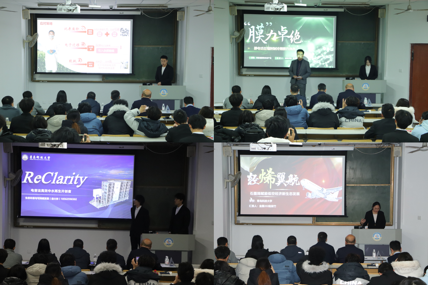 经前期赛事宣传、组织报名、学院初筛,共有14个项目团队进入现场路演环节。各项目团队充分结合材料学科特色,围绕项目背景、核心技术、市场前景、商业模式等关键内容展开精彩展示,在新材料应用、环保科技、智能制造等领域提出了诸多兼具创新性与可行性的创业构想,以精炼的语言、直观的演示呈现项目核心亮点,展现出材料学子扎实的专业功底与积极的创新精神。