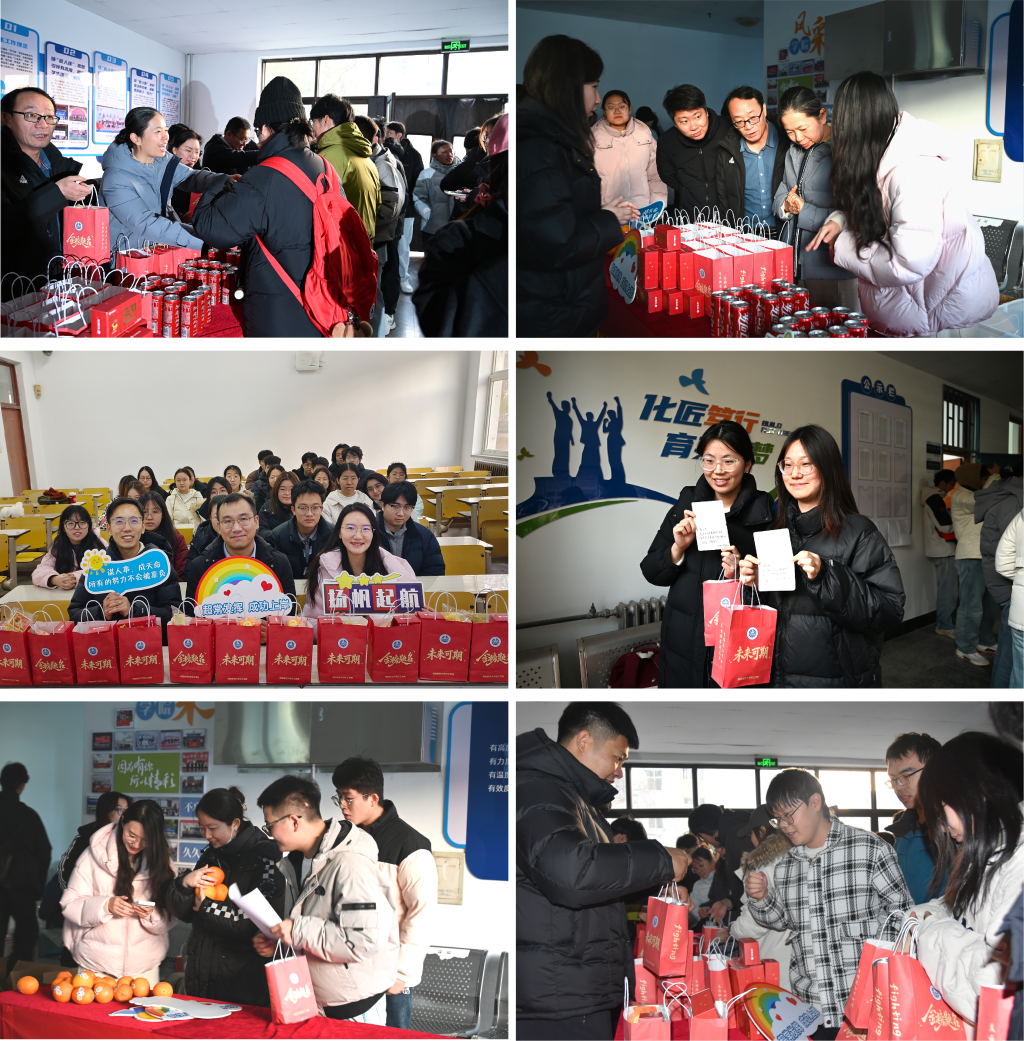 寒冬岁末,研考在即。为助力2026届考研学子舒缓备考压力,激发备考热情,坚定考研信心,化工学院于12月15日在第一教学楼举办“温情护航,一战成硕”考研送温暖活动。化工学院党委书记孙明媚,党委副书记兼副院长贾建闯,副院长高传慧、赵瑞阳、崔培哲、李雁涛,学工办全体老师及2026届考研学子参加活动。