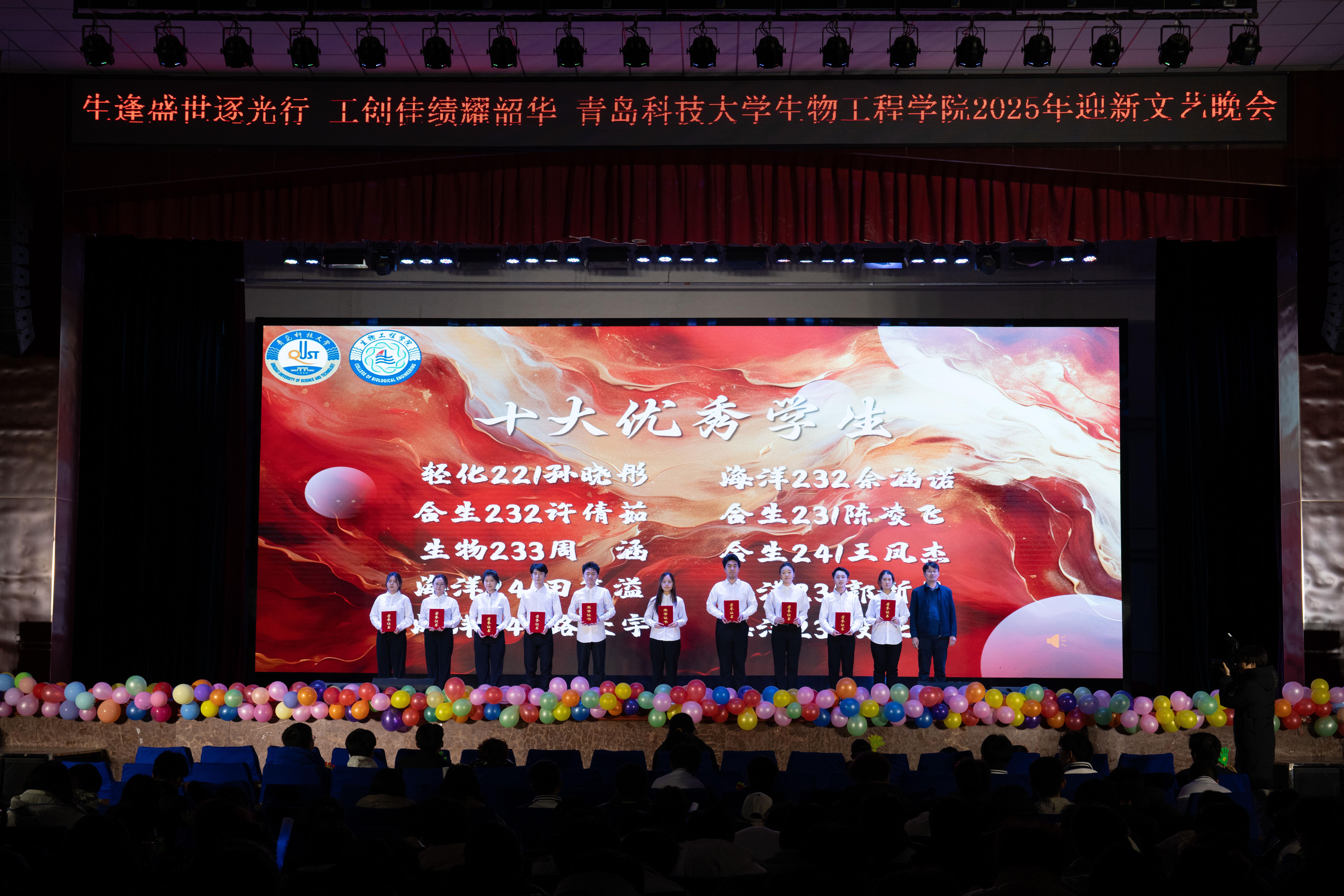 为激励广大生工学生勇担时代重任,传承青春力量,近日,生物工程学院在四方校区西礼堂举行“生逢盛世逐光行,工创佳绩耀韶华”2025年迎新晚会。生物工程学院院长顾玉超、党委副书记兼副院长刘浩、洛阳路街道周口路社区党委书记李静、学工办主任秦洪庆、全体辅导员和2024级、2025级全体学生参加活动。