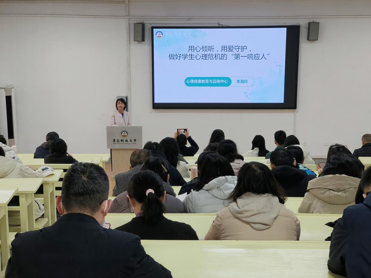 12月9日下午,化学院邀请学校心理健康教育与咨询中心主任李海玲老师在第一行政楼243会议室为全体导师及班主任开展学生心理危机工作实务培训,会议由化学院党委书记肖强主持,化学院百余名教师参加培训。