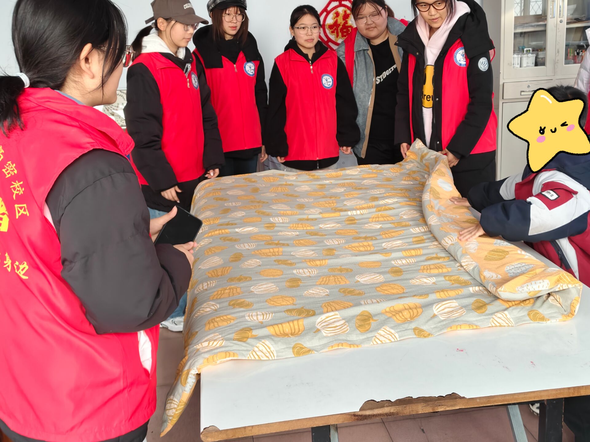 随着情感连接的加深,活动自然过渡到生活技能培养环节,这也是本次活动的重点内容之一。青年学子们纷纷俯身与孩子一对一相伴,采用“手把手教学、一步步引导”的方式,教孩子们学习叠衣服、整理被褥等基础生活技能。面对孩子们初期的生疏与迟疑,同学们始终以微笑鼓励,重复示范直至孩子掌握要领。当看到孩子们亲手将衣物叠放整齐时,脸上露出的自豪笑容,成为现场最动人的风景——技能的传递背后,是信任的建立与安全感的滋养。