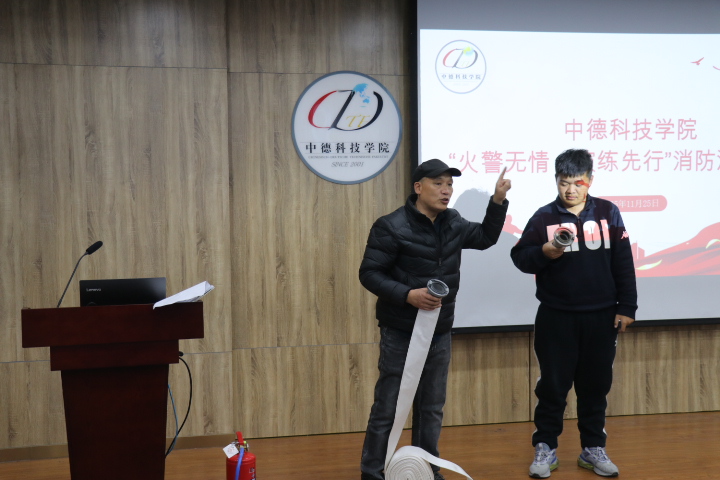 为全面增强师生消防安全意识与应急处置能力, 11月25日下午,中德科技学院组织开展年度消防演练活动。学院党委副书记兼副院长张大伟、学校安全管理处赵淑东老师、学工办教师代表及2025级全体学生共同参与。