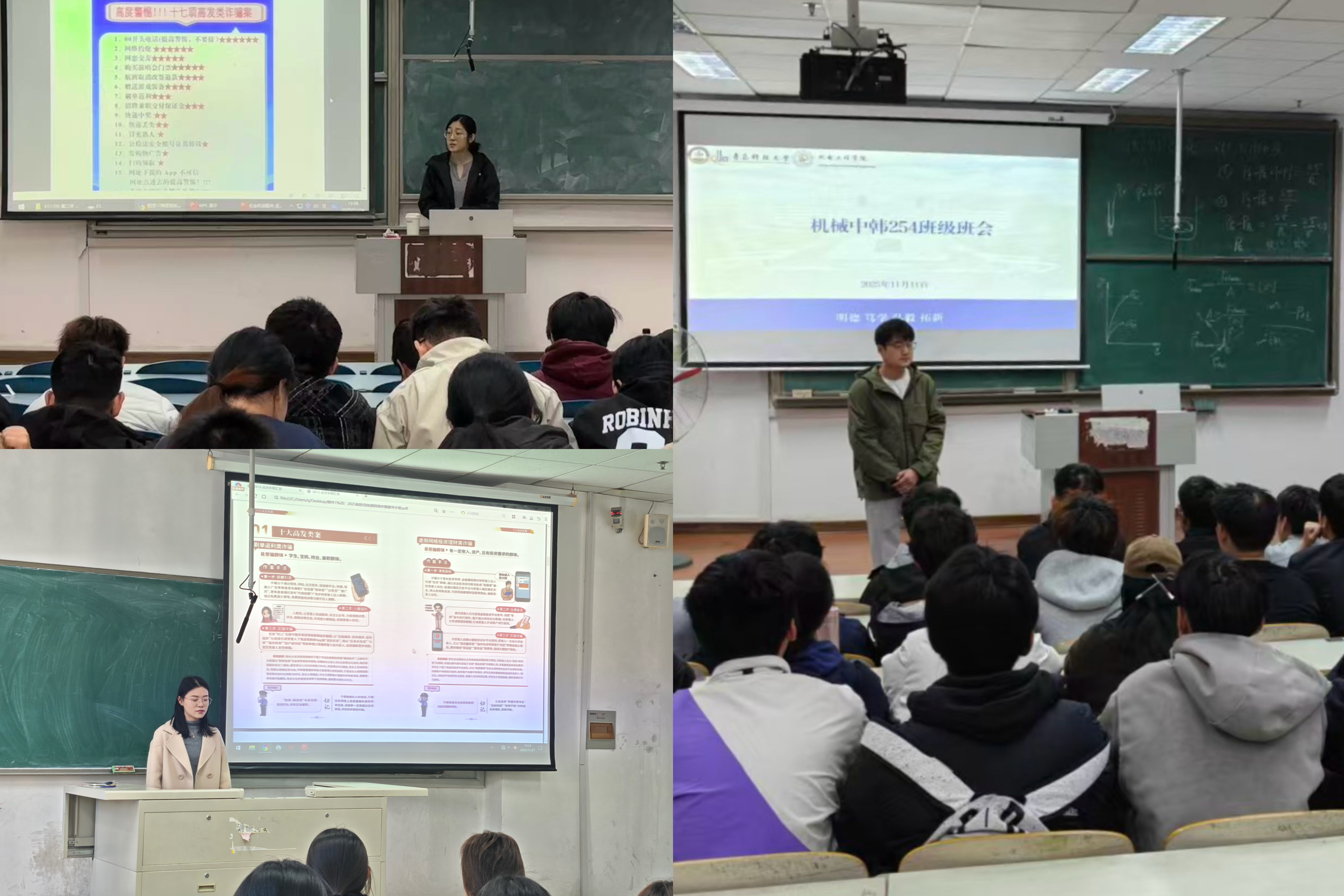 近日,机电工程学院深入开展“防范电信网络诈骗,共筑平安和谐校园”系列安全主题教育班会,原汁原味学习伟德国际1949官网印发的《17项高发类诈骗案》学习资料。此次主题班会由各班班主任主持,各班级全体学生参加。