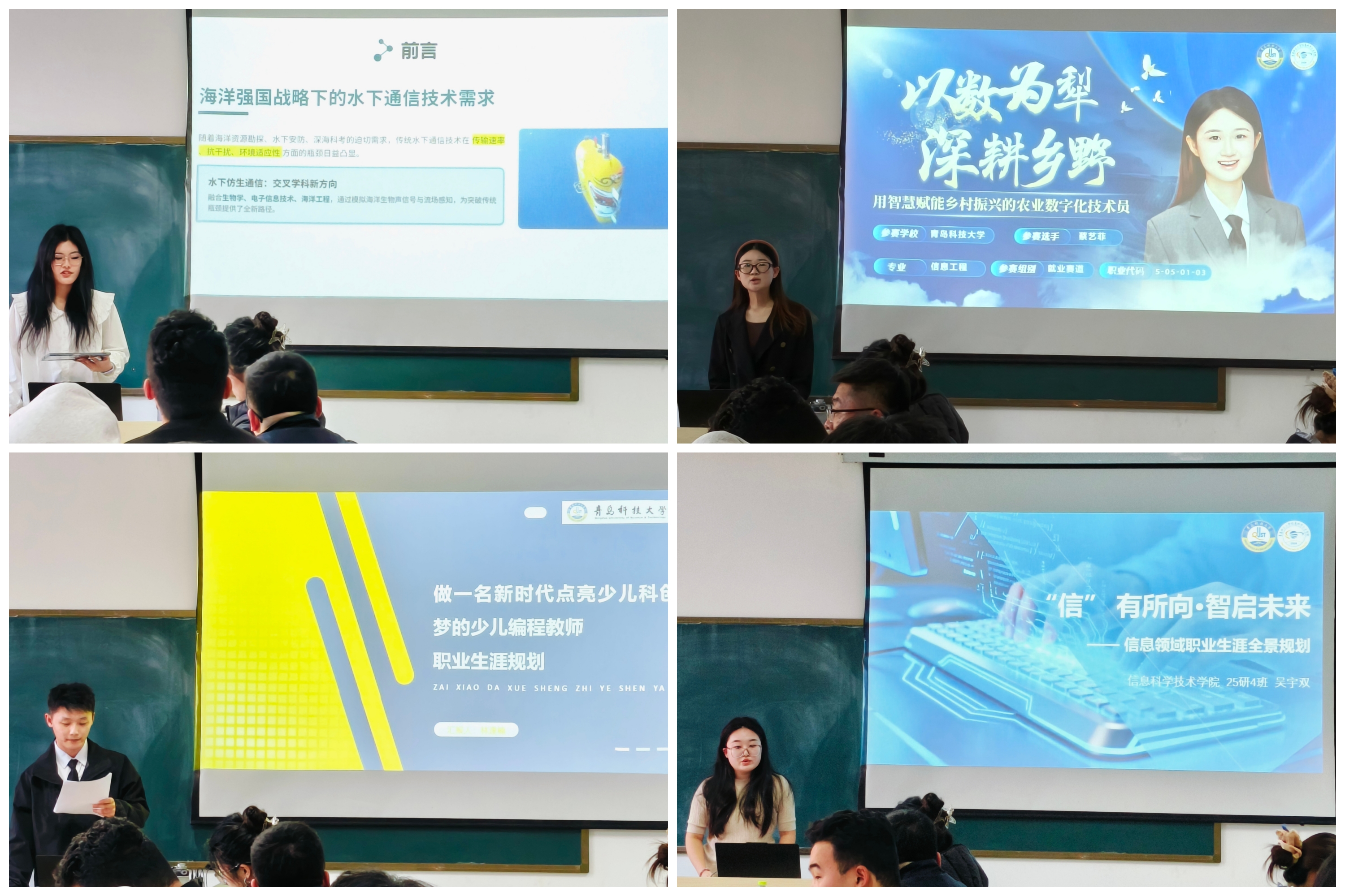 为提高学院学生的生涯规划水平和就业核心竞争力,引导青年学生将个人理想与时代需求深度融合,11月18日下午,信息学院在学院楼332教室举办“思拓未来”杯第三届大学生职业规划大赛。大赛邀请思拓未来教育科技有限公司创始人于深,以及学院校企合作办公室老师徐一可、学院学工办老师郑开齐、陈冬莉、马天晨、韩朝阳和第二届大赛省赛银奖获得者刘海晨作为评委出席本次比赛,60余名学生到场观赛学习。