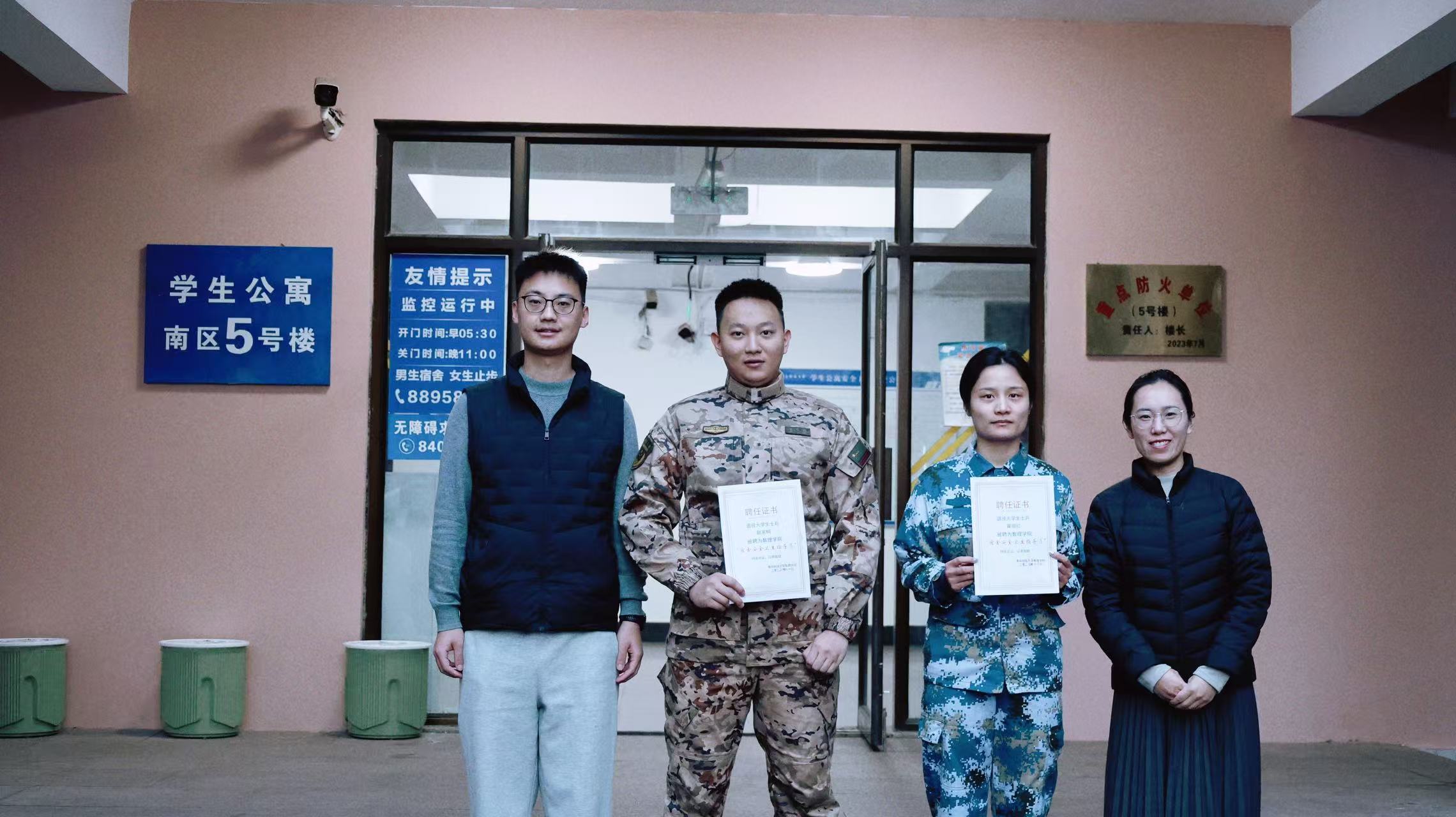 近日,数理学院创新学生宿舍管理模式,充分发挥退役大学生士兵优势,正式聘任本科生赵家桐、研究生翟丽红两名同学担任学院首批“宿舍安全卫生指导员”。他们将把部队的优良作风和严格标准带入学生宿舍,助力提升宿舍整体环境,并以此为窗口开展国防教育和入伍动员。