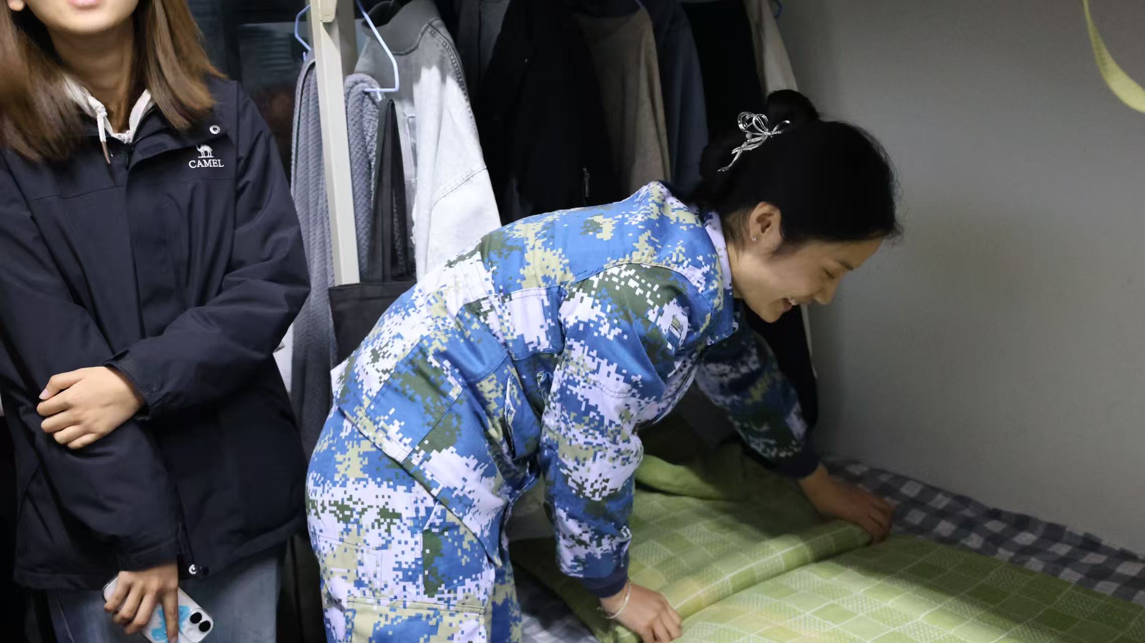 仪式现场,赵家桐和翟丽红分别讲述了自己的军旅经历,辅导员刘敏、丁璇思为两位同学颁发聘任证书。受聘结束后,赵家桐和翟丽红带领各年级宿舍长代表走进学院的标杆宿舍进行实地观摩,对内务标准进行了细化界定,同时进行现场示范教学,从被褥叠放、物品摆放到整体布局,手把手指导同学们提升内务整理水平。后期,他们将积极参与到学院定期组织的宿舍安全卫生检查中,重点对用电安全、消防隐患、卫生死角等进行逐一排查和专业指导,提升同学们的安全意识和自我管理能力。