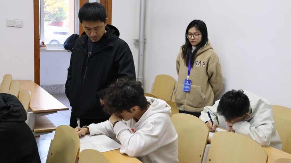 考试期间,监考人员恪尽职守,严格执行考场规定,贾明明深入各考场巡查指导,详细了解考场秩序、监考履职及学生答题情况;全体参考学生精神饱满,沉着应考,考场秩序井然,展现出学院学子勤学善思、求真务实的良好风貌。考试结束后,在监考员的统一指挥下,试卷、答题卡等材料回收有序,学生按要求安静离场。