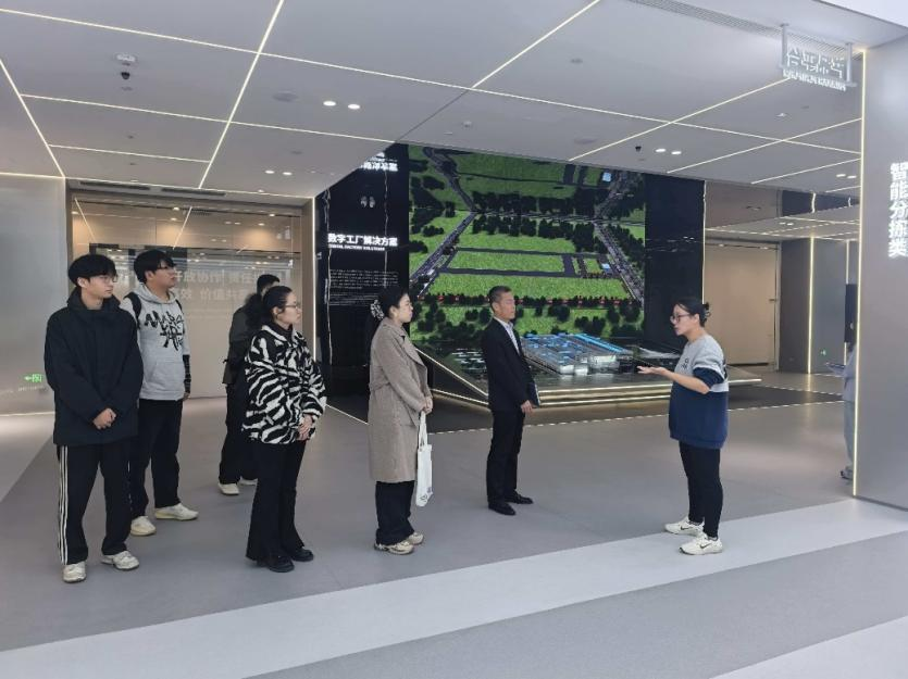 企业相关负责人对信息学院师生的到来表示热烈欢迎。师生一行实地参观了企业文化展厅、智能物流与制造工厂的演示沙盘等,直观深入的了解了企业现代化工作环境以及未来行业发展趋势。