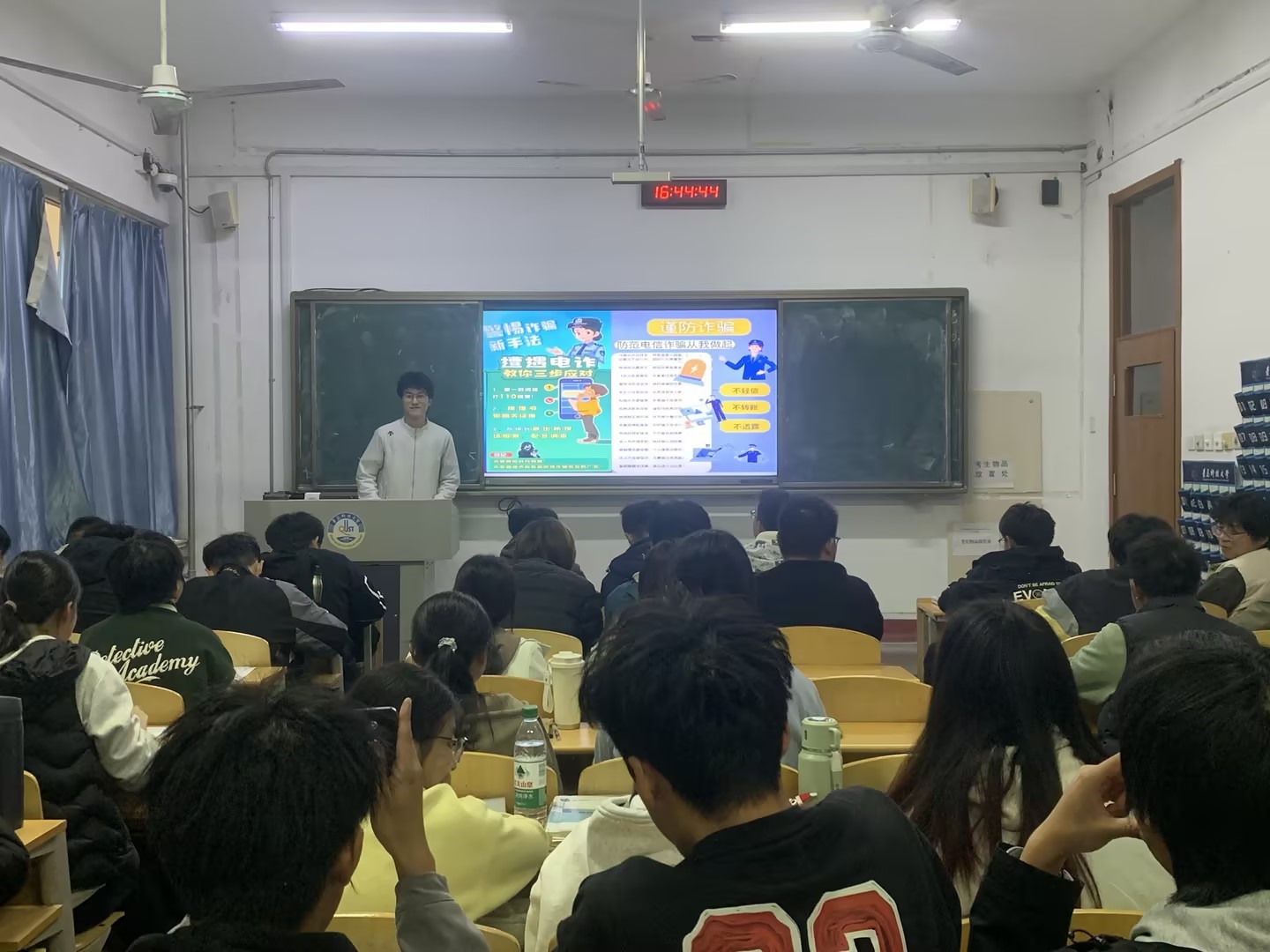 骨干先行,压实责任。各年级召集全体班长、团支书举行反诈专题培训会,由辅导员进行政策解读与案例剖析,带领班长、团支书学习相关防范诈骗安全警示文件,组织观看反诈警示教育片,并分享身边案例,用“身边事”教育“身边人”。同时明确学生骨干在反诈宣传工作中的桥梁与纽带作用,要求他们率先成为“反诈明白人”。并部署安排班长和团支书在各自班级开展反诈主题班会。