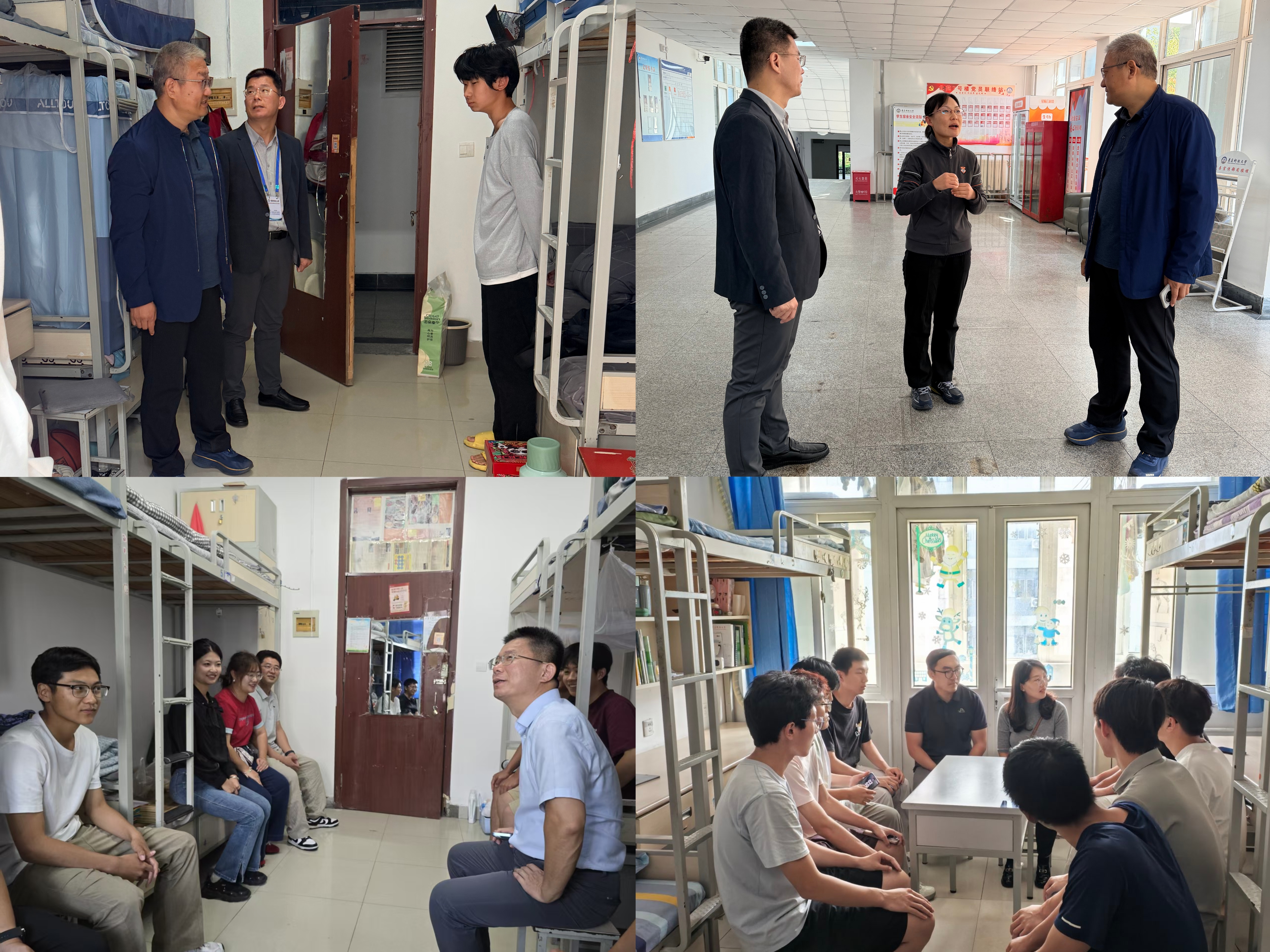 进宿舍,把“暖心服务”送到生活一线。为切实打通服务学生的“最后一米”,学院建立辅导员常态化与突击式结合的宿舍走访机制,每人每周固定2次常态化走访,学院领导班子带头进宿舍,重点了解学生住宿环境、作息习惯、人际关系等情况;每月至少开展2次“突击式”安全排查,针对违规电器使用、消防安全隐患等问题进行专项检查。在走访过程中,辅导员们化身“生活管家”与“心灵导师”。针对新生刚入学时的适应难题,辅导员逐间宿舍开展“破冰座谈会”,帮助新生快速融入集体;面对毕业生求职季的焦虑情绪,辅导员带着就业政策手册走进宿舍,一对一指导简历修改与面试技巧;遇到学生生病或生活困难,辅导员第一时间上门慰问,协调解决实际问题。