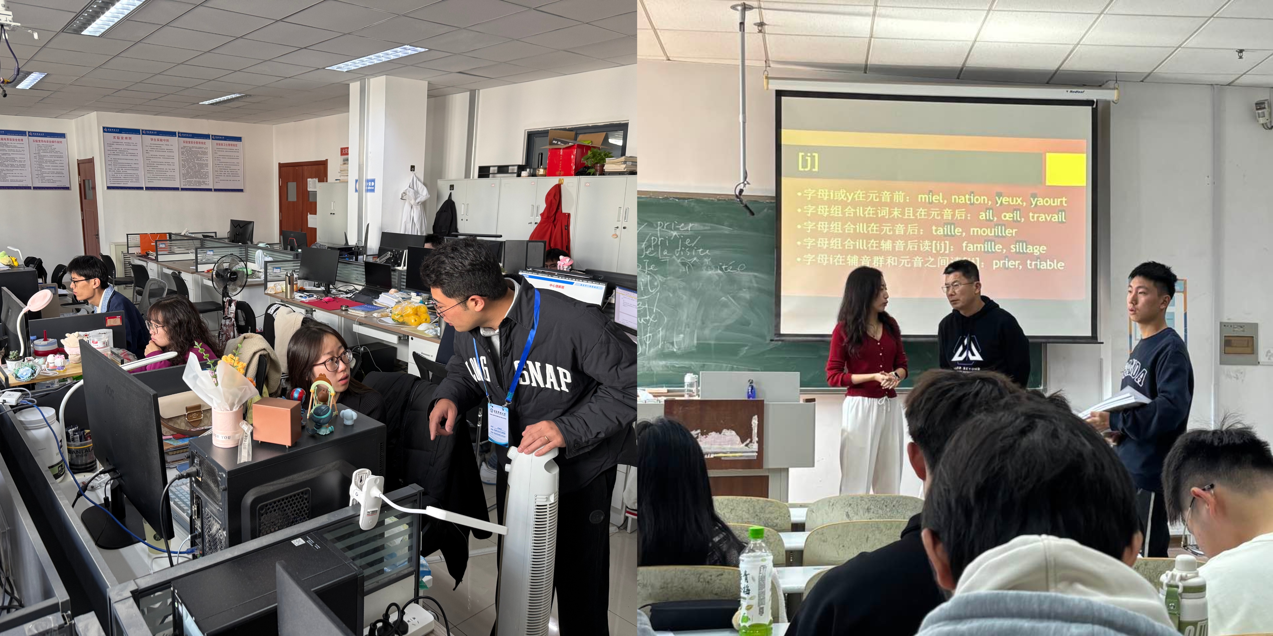 进课堂,把“学业护航”挺到学习一线。为精准掌握学生学业情况,学院推行辅导员“随堂听课+课后访谈”制度,要求每位辅导员进课堂、进实验室,重点关注学生出勤、听课专注度、课堂互动等情况,同时与任课教师建立常态化沟通机制,及时了解学生课程学习难点与薄弱环节。