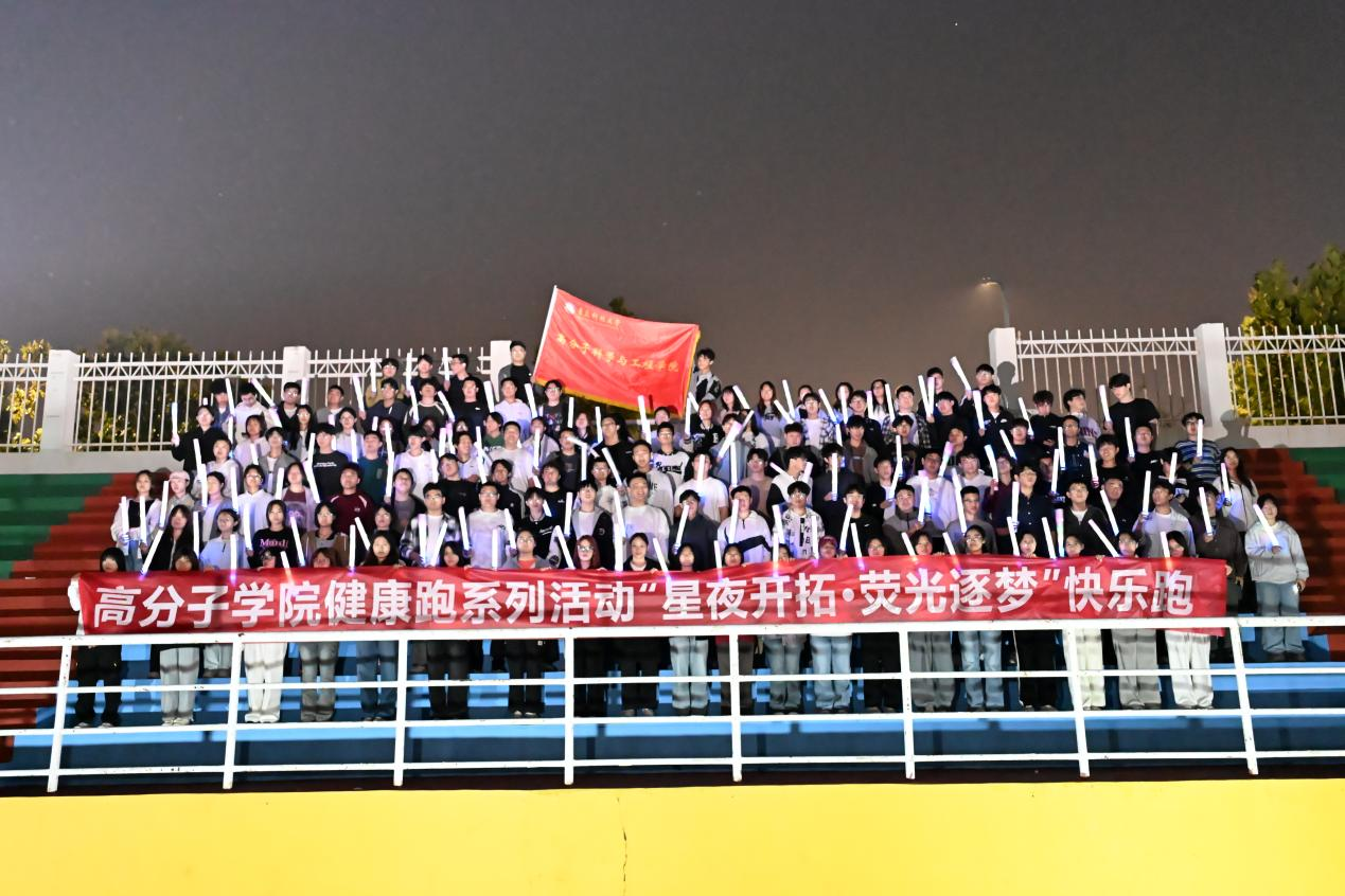 为贯彻落实学校关于加强大学生体育锻炼的号召,持续推进学院健康跑体系建设工作,近日,高分子学院于东山操场面向大二年级开展健康跑系列活动,以“星夜开拓・荧光逐梦”为主题,将集体夜跑与荧光接力创新结合,既有效激发学生运动热情,也正式拉开新学年健康跑活动的序幕。
