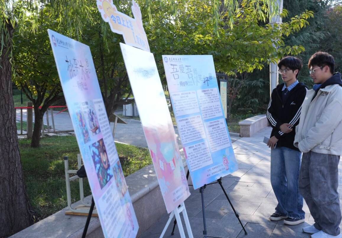 【对话共鸣:从问答到共情,搭建心灵桥梁】“湖畔聆师言,明镜映真知”活动以多维互动构建师生沟通纽带。10月21日,同学们前往心理工作站领取定制卡片,将学业困惑、生活迷茫与未来期许细细落笔,同时为陌生同窗的疑问附上暖心寄语。心理工作站筛选典型问题后,联动专业教师和辅导员老师提供针对性解答,这些承载思考与关怀的问答卡片最终错落排布于明镜湖畔的展板上,成为秋日校园里一道兼具温度与深度的文化景观。驻足品读的师生在笔墨流转间感受思维碰撞,让师长的经验智慧转化为驱散焦虑的心理能量。