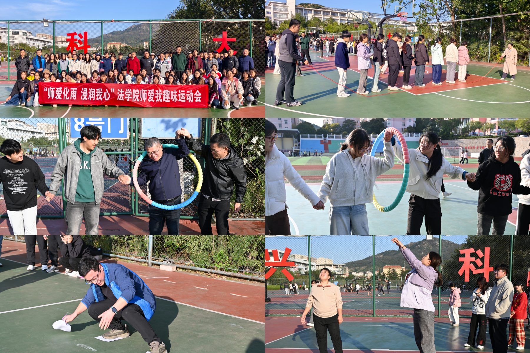 运动聚欢愉,师生共此时。学院心理工作站与学院工会共同举办了“师爱化雨,浸润我心”师生趣味运动会。在比赛中,各支由老师和学生组成的参赛队伍,在“筷子夹球”“欢乐大摇绳”“呼啦圈传递”等趣味项目中默契配合、团结协作,彼此加油助威,赛场气氛热烈而温馨。以运动为纽带,充分展现了法学院师生奋发向上的精神风采,让师生情谊在欢声笑语中进一步升华。