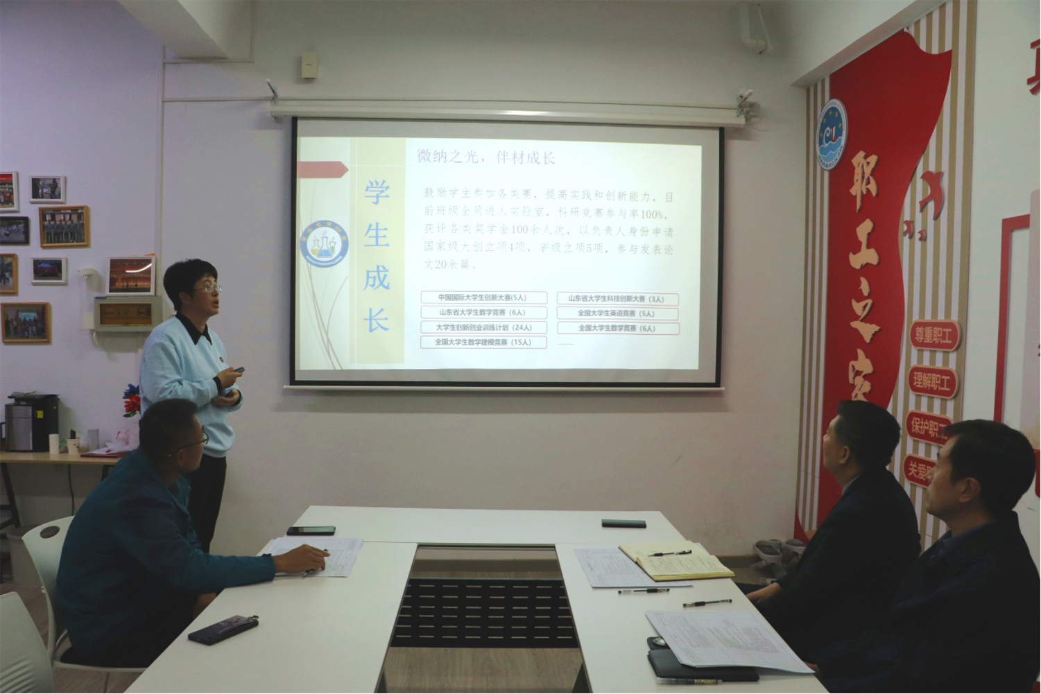 答辩会伊始,孟照国对班主任在日常工作中的辛勤付出与突出成效给予充分肯定,强调班主任作为学生成长道路上的重要引路人,在班级建设、优良学风营造及学生思想引领等方面的关键作用,并鼓励各位候选人充分展示工作亮点,分享工作经验并以此为契机共同交流学习进步。