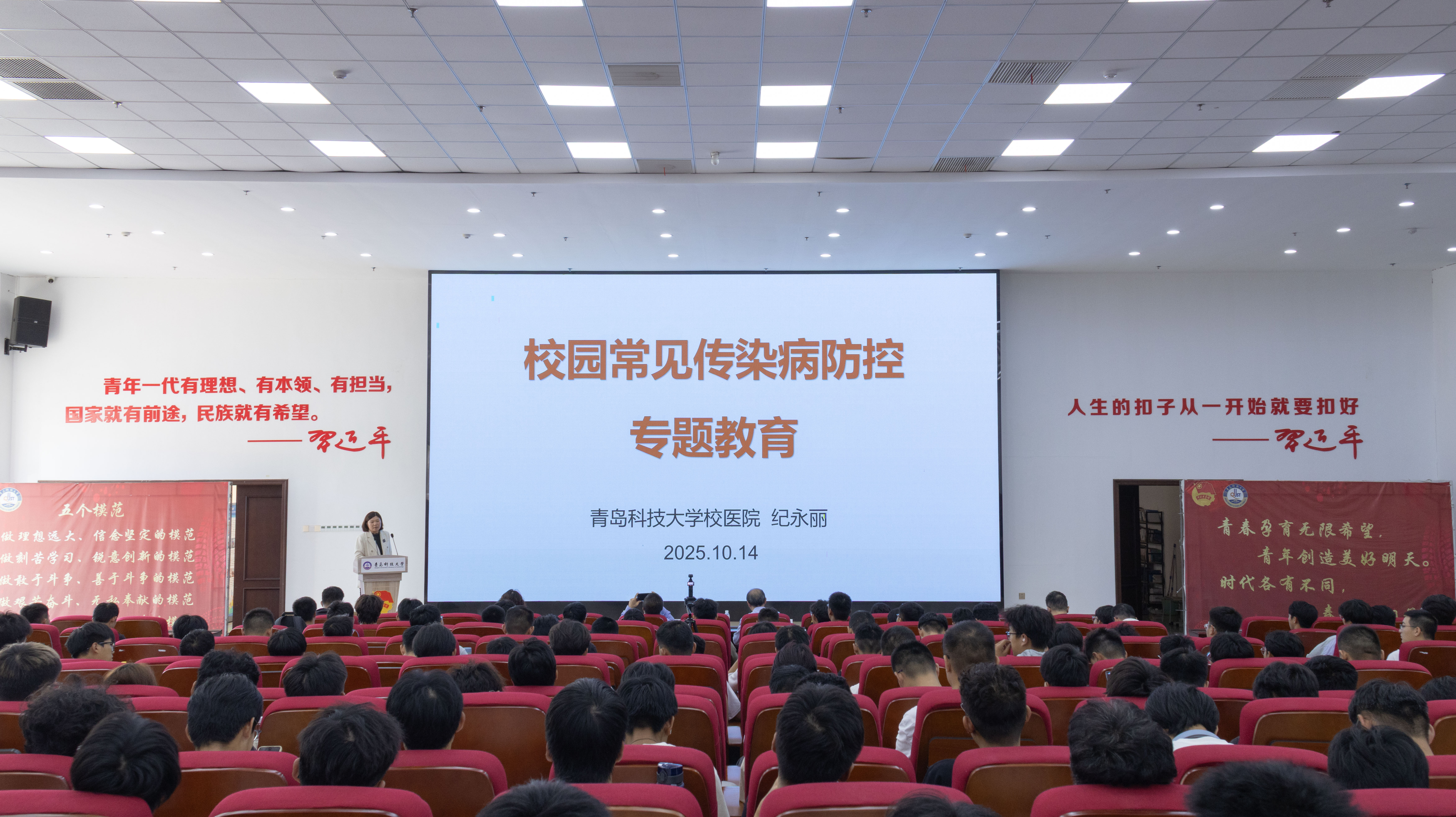 专题教育环节,刘璐以“机械能动力、赋能‘心’活力”为题,从积极心理学的角度详细开展心理健康谈,引导学生关注心理健康,学会调适情绪、增强心理韧性,为学业发展注入“心”能量。校医院纪永丽大夫围绕“冬季防疫小知识”主题讲座,详细讲解了常见传染病肺结核、流行性感冒、水痘的预防措施与个人健康管理要点,提醒同学们室内勤通风、多休息,及时就医等,筑牢健康防线。余全波以“校园安全,你我同行”为主题,结合实际案例强调消防安全、交通安全、防诈反诈等重点内容,筑牢校园安全防线。