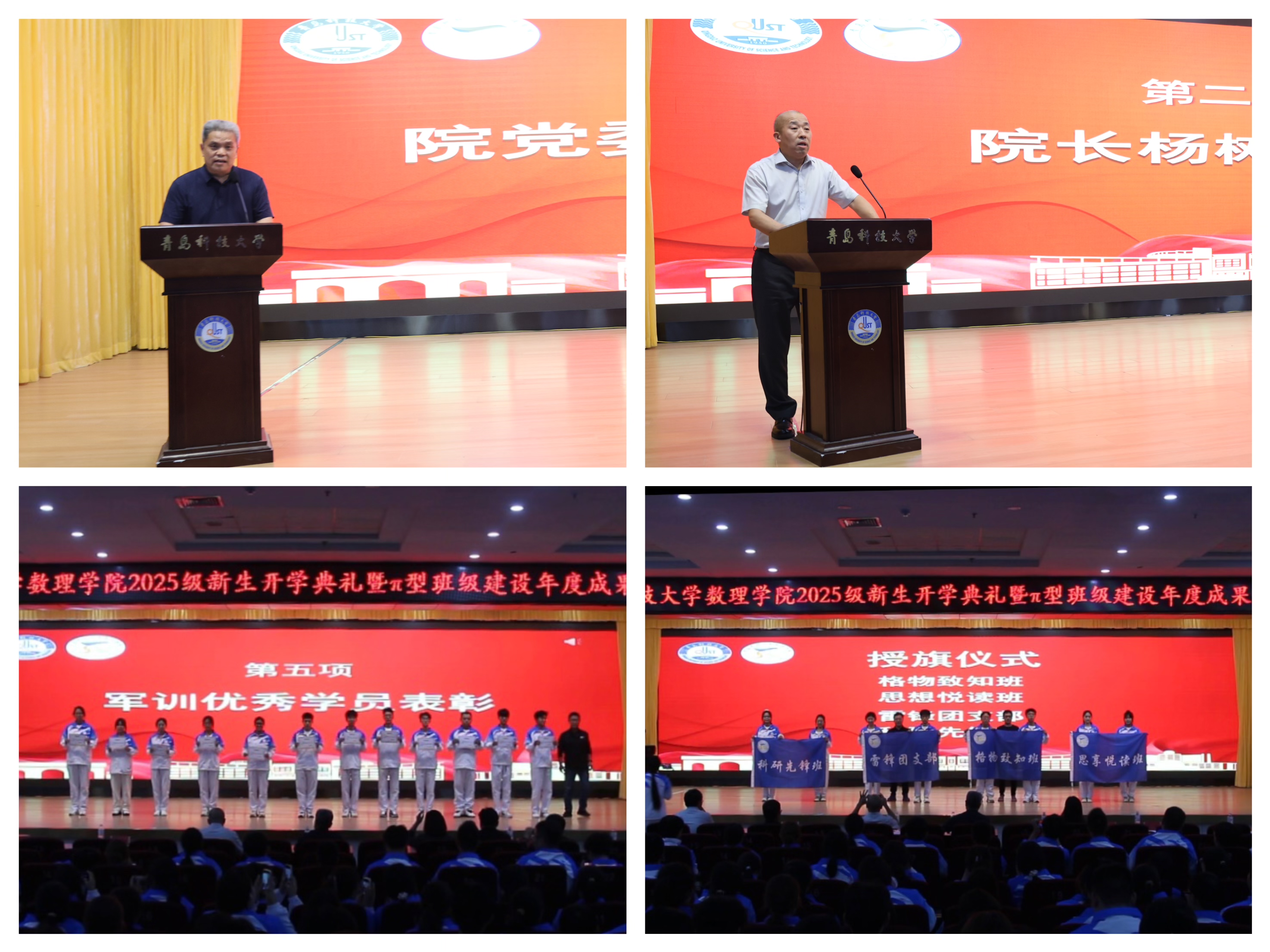 10月14日下午,数理学院在崂山校区第三报告厅隆重举行2025级新生开学典礼暨π型班级年度成果汇报会。学院党委书记刘保成、院长杨树国、副院长郭广海、党委副书记李雯雯,各系主任、新生班主任、学工办辅导员及全体大一新生共同参加。典礼由学院学工办主任付凯主持,现场气氛庄重热烈,充分展现了数理学院师生团结奋进、追求卓越的精神风貌。