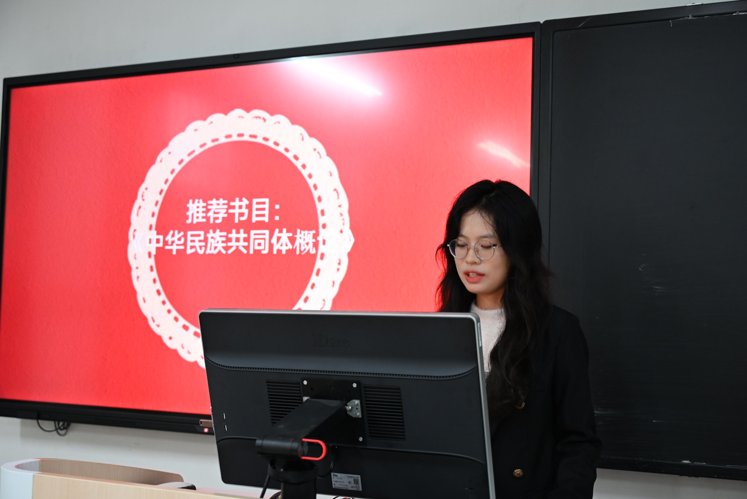 活动中,同学们通过集中学习《中华民族共同体概论》等经典著作,积极分享心得体会,共同回顾各民族共同书下的辉煌历史,深刻理解中华民族多元一体的格局与精神内核。领读学生围绕“初识中华民族共同体”“基本理念与理论渊源”以及“新时代下的实践路径”等维度展开讨论交流分享。与会同学踊跃发言,结合国内外发展大势,探讨青年在新时代应如何传承和弘扬中华民族共同体意识。