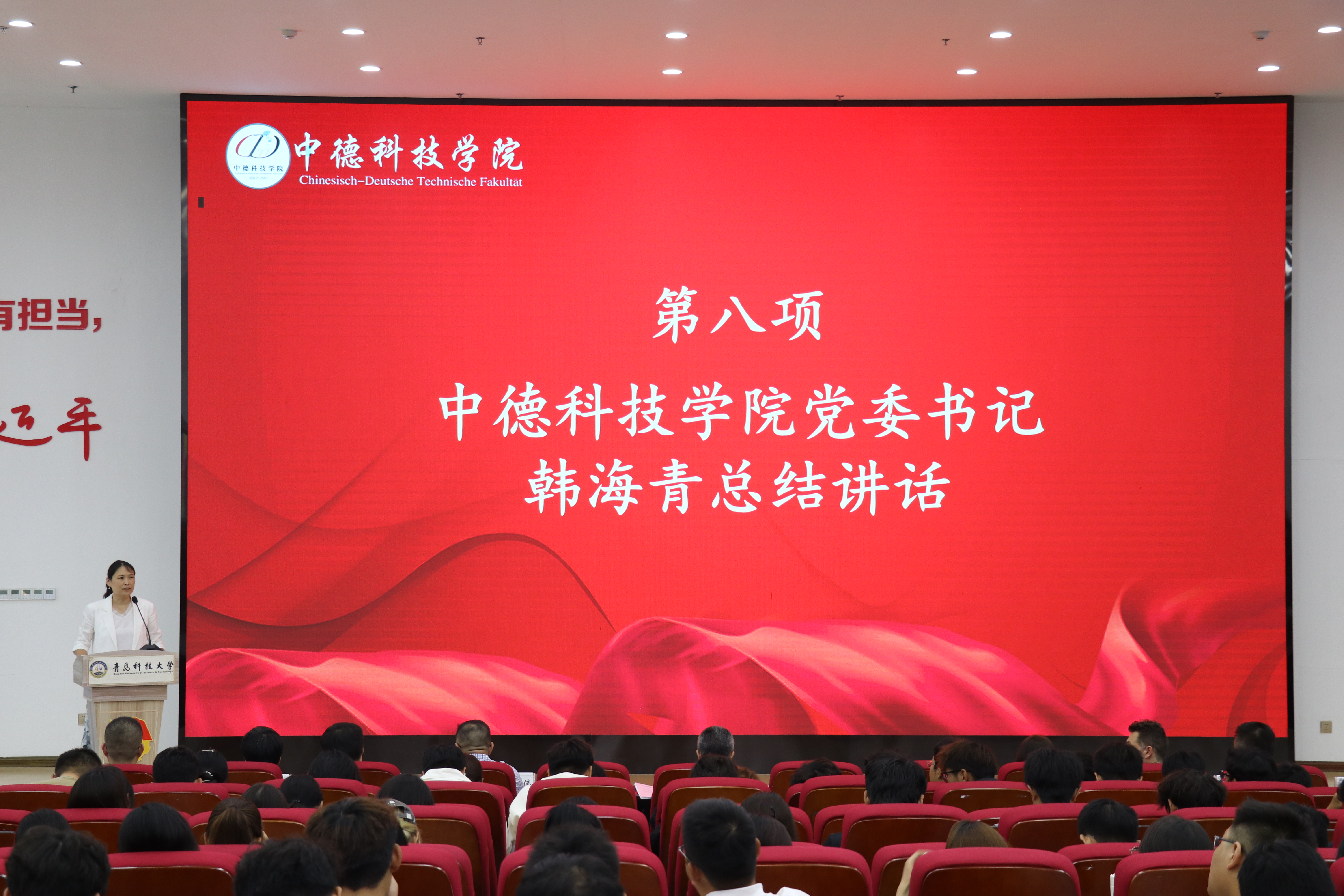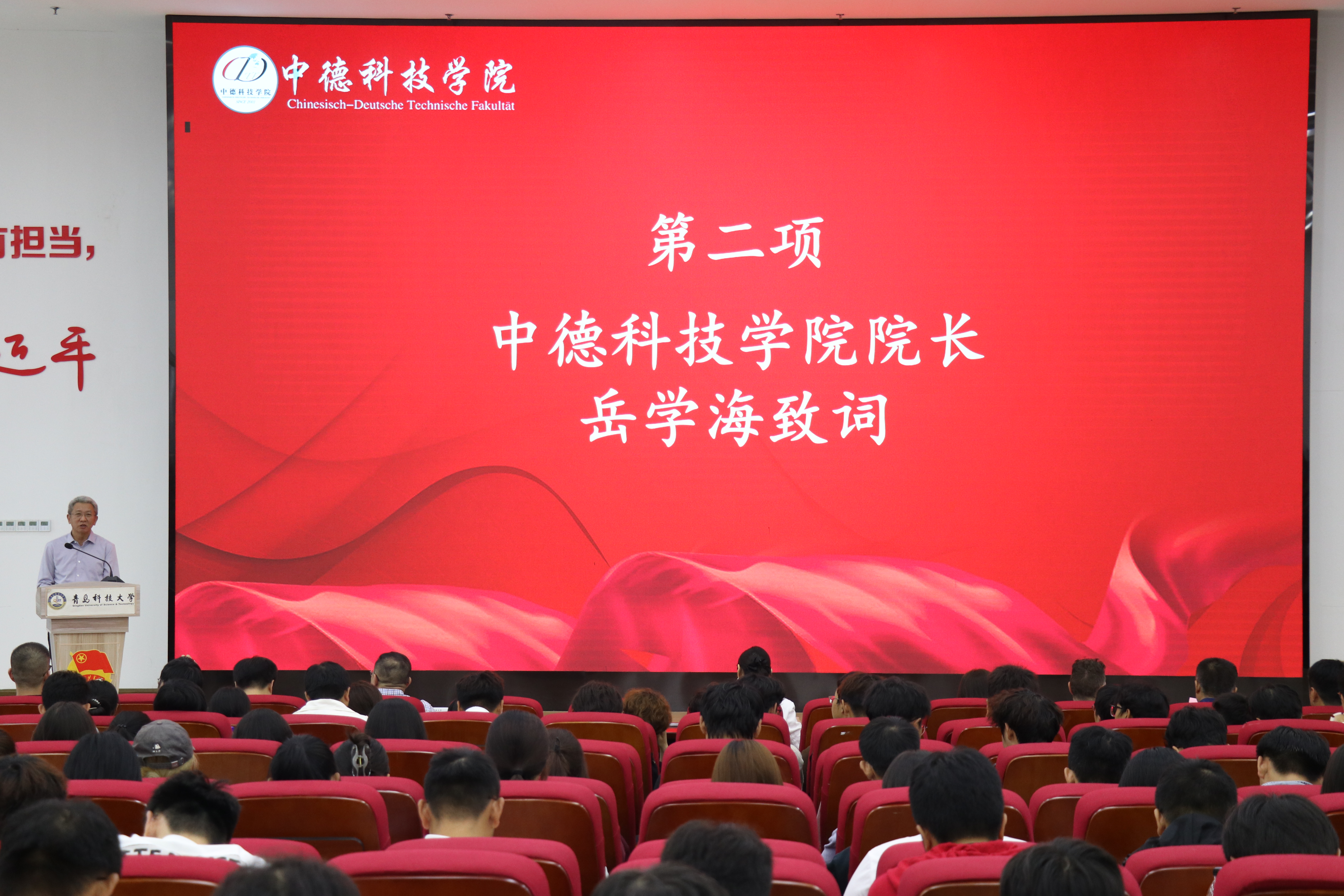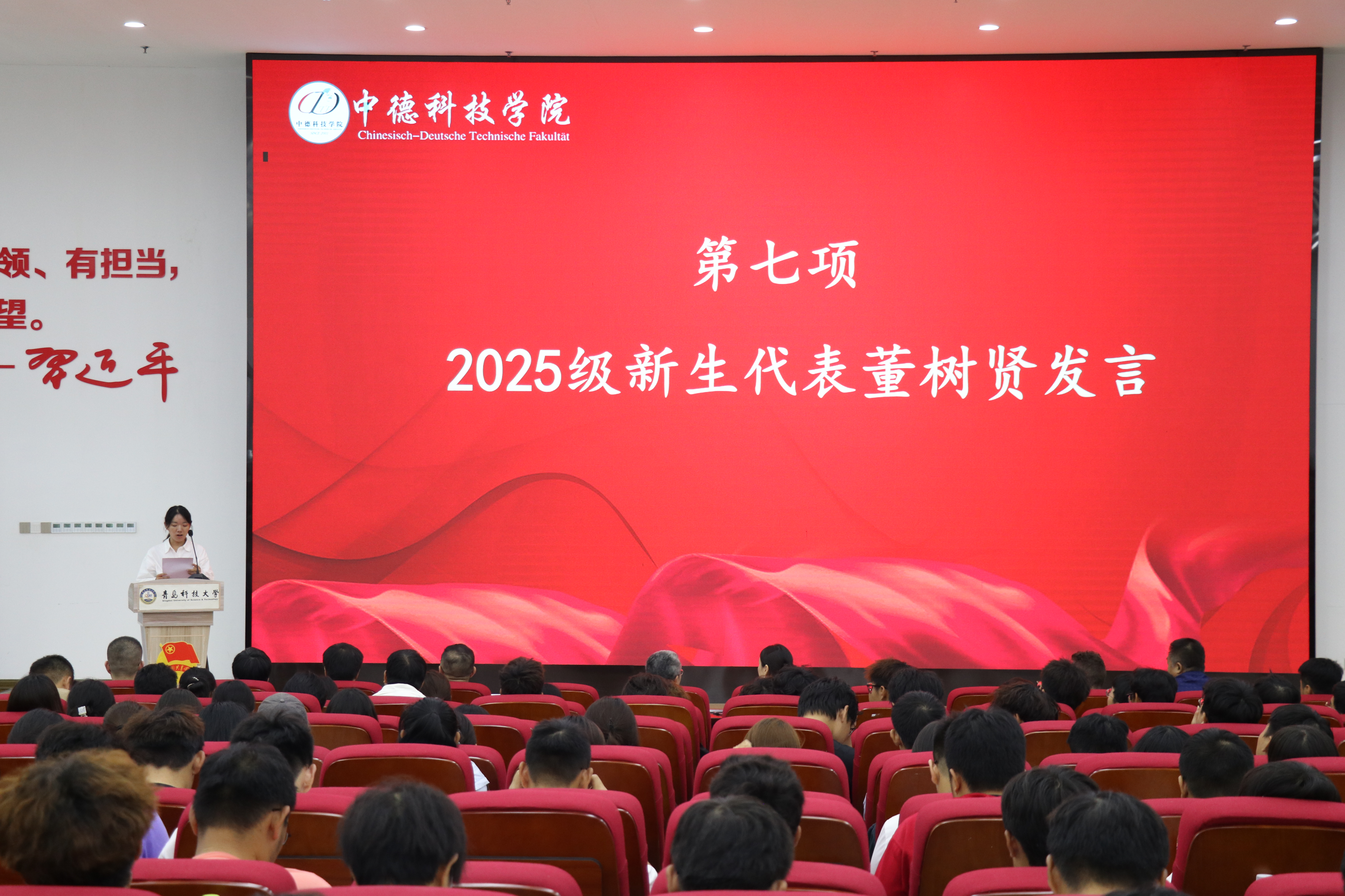 近日,中德科技学院2025级新生开学典礼暨德语等级考试成绩优异学生表彰仪式在崂山校区北苑团学报告厅举行。学院党政领导班子成员、德国锡根大学代表、教师代表以及2025级全体新生参加活动。
