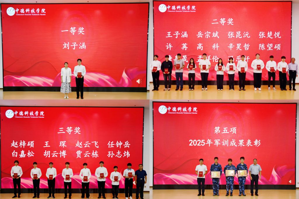 在仪式的表彰环节,学院领导为获得德语等级考试成绩优异学生及2025级新生军训优秀连队颁发了证书。