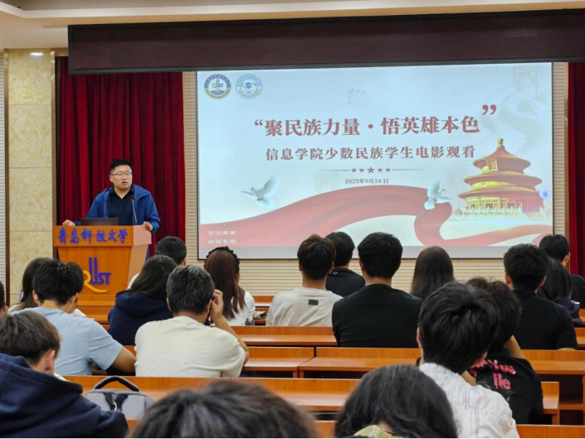 9月24日,信息学院在402报告厅组织开展“聚民族力量・悟英雄本色”少数民族学生观影活动。辅导员郑开齐以及来自各年级少数民族学生代表齐聚一堂,共赴光影之约。