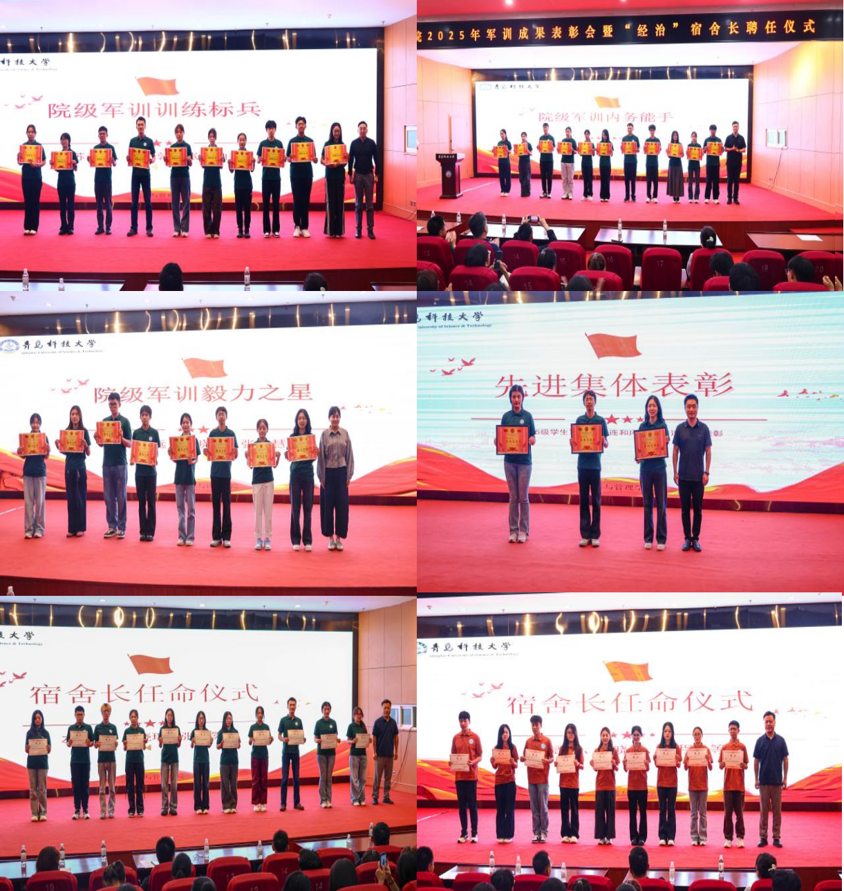 军训学生代表张晓瑞、周俊康发言时表示,将把军训中养成的纪律意识、自律习惯融入日常生活,以实际行动助力“经治”宿舍建设,为美好大学生活打下良好基础。