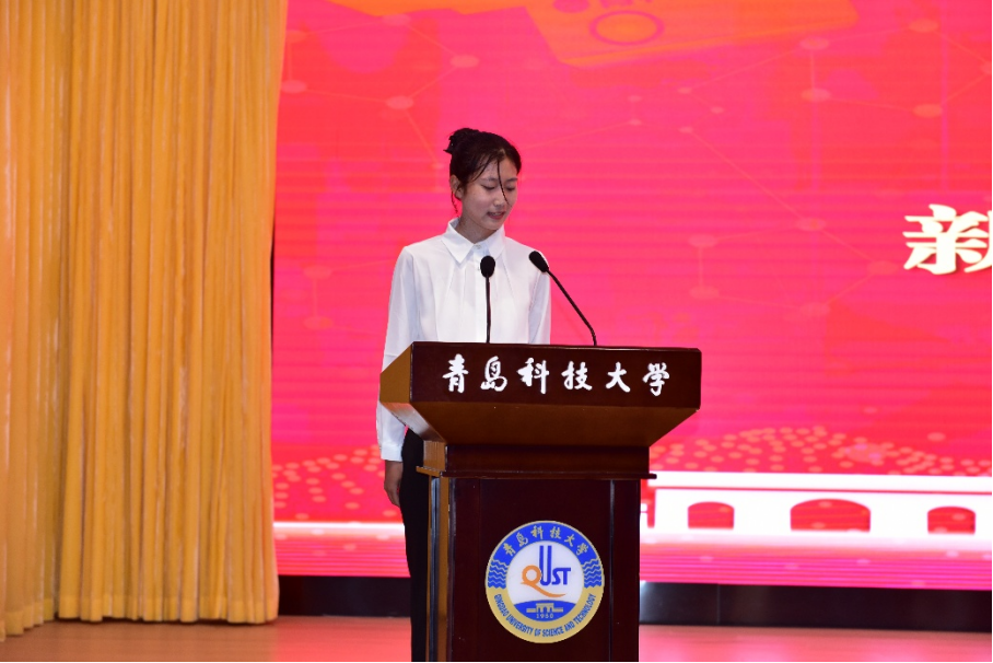通信252班武圣雯代表全体新生上台发言。她表达了对老师的感恩,对大学生活的憧憬。她分享了对于大学生活的三点思考:转变角色,融入新知;博学慎思,明学笃行;修身以德,全面发展。倡导同学们勇敢面对挑战,珍惜大学时光,携手共进,为自己的未来奠定坚实基础。