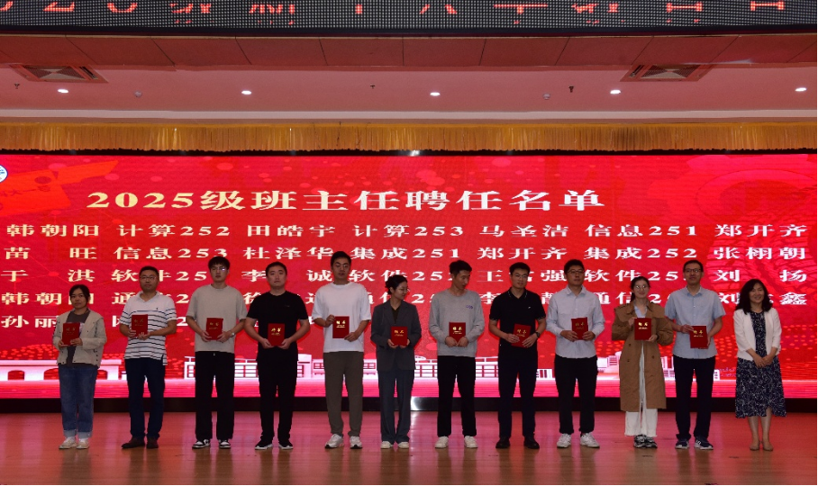 王景景为2025级本科生班主任颁发聘书。许桂锋、周艳平、陶冶分别为为校级军训先进集体及个人、学院军训先进个人和学院军训优秀宿舍颁奖。