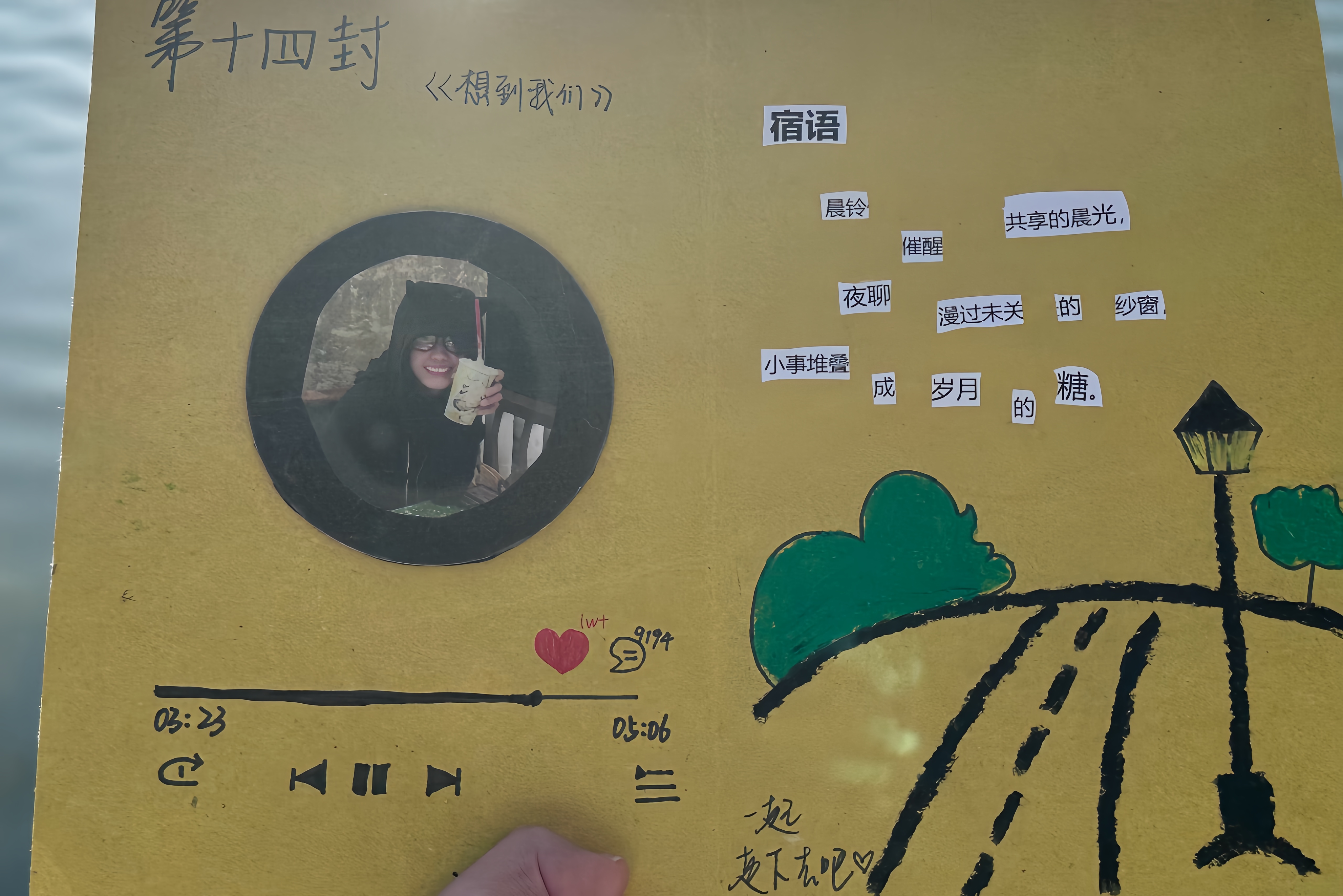 【情感联结:从共创到共情,激活青春表达】在“诗拼友意,影记同行”活动中,同学们以小组为单位,将拼贴诗创作与校园实地打卡相结合,把对友谊的理解融入视觉艺术与空间叙事。参与者从旧书刊中选取文字片段,共同协作完成三行拼贴诗,并携作品前往校区图书馆、明镜湖等标志性地点进行摄影记录。活动不仅激发了学生的创意表达潜能,更在协作与分享中深化了彼此的情感共鸣。优秀作品通过新媒体平台进行集中展示,进一步扩大了温暖与创意的传播影响力。