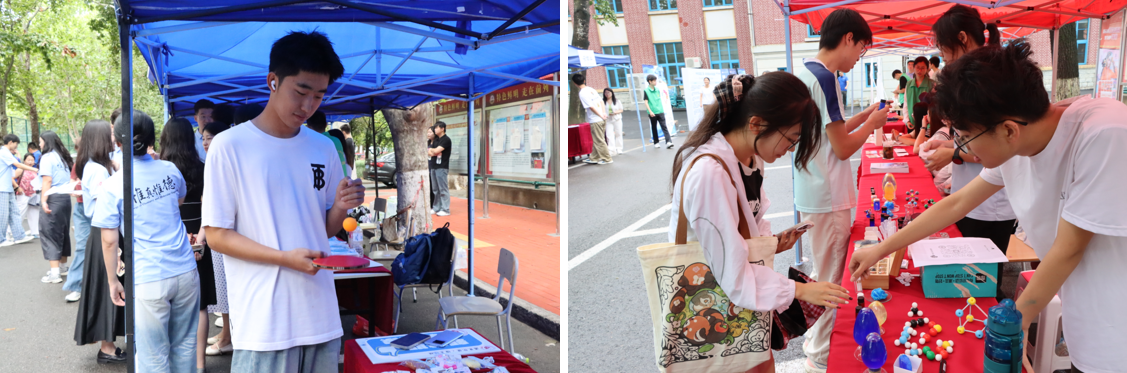 学科特色显匠心。学院根据学科特色,设计系列活动彰显化院专业魅力:“触碰化学,催化梦想”实验展演区,“蓝晶雨”“风暴瓶”等趣味化学反应吸引新生驻足体验;“指尖上的海洋馆”科普海洋知识,加强爱护海洋环境意识,真实的海洋标本让新生感受到海洋的魅力;体育主题活动融合足球、乒乓球等项目,响应学校体育综合改革。各类活动既展现学科特色,又促进新老生交流,为新生搭建了感知专业、融入集体的桥梁。