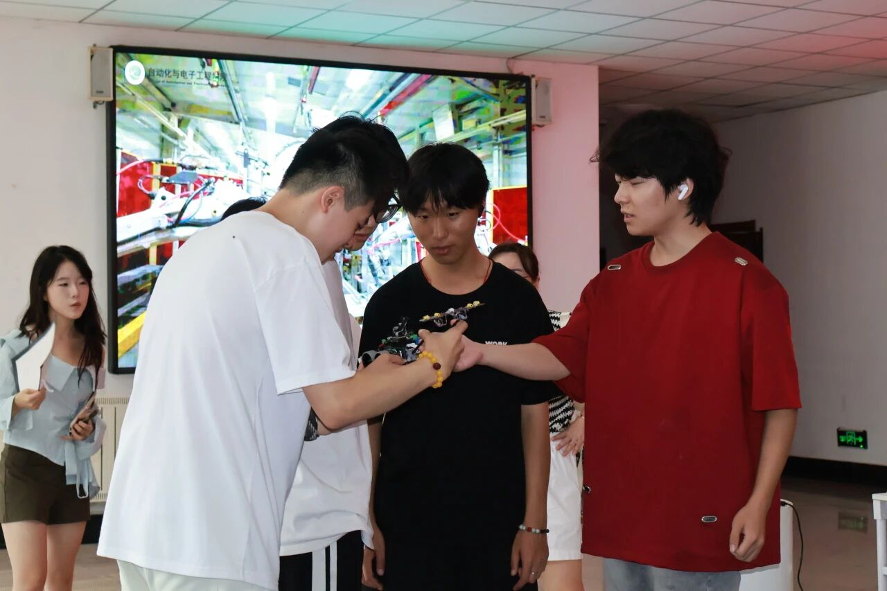 科技启航,智引未来。刚刚过去的九三阅兵仪式,新一代武器装备集中亮相,智能化、无人化、信息化发展趋势明显,人工智能重塑国防力量。学院在迎新现场设置“智能车展示区”、学科竞赛光荣榜等元素,展示学院脑机接口团队2025世界机器人大赛一等奖、中国智能制造挑战赛全国一等奖等近期成果,高年级学长学姐现场进行生动演示和深入浅出的讲解,并与新生互动答疑。炫酷的智能车在赛道上灵活穿梭,完美展现了自动化技术的应用魅力。培养新生“胸怀祖国、自立自强、协同创新、追求卓越”自动化人精神。