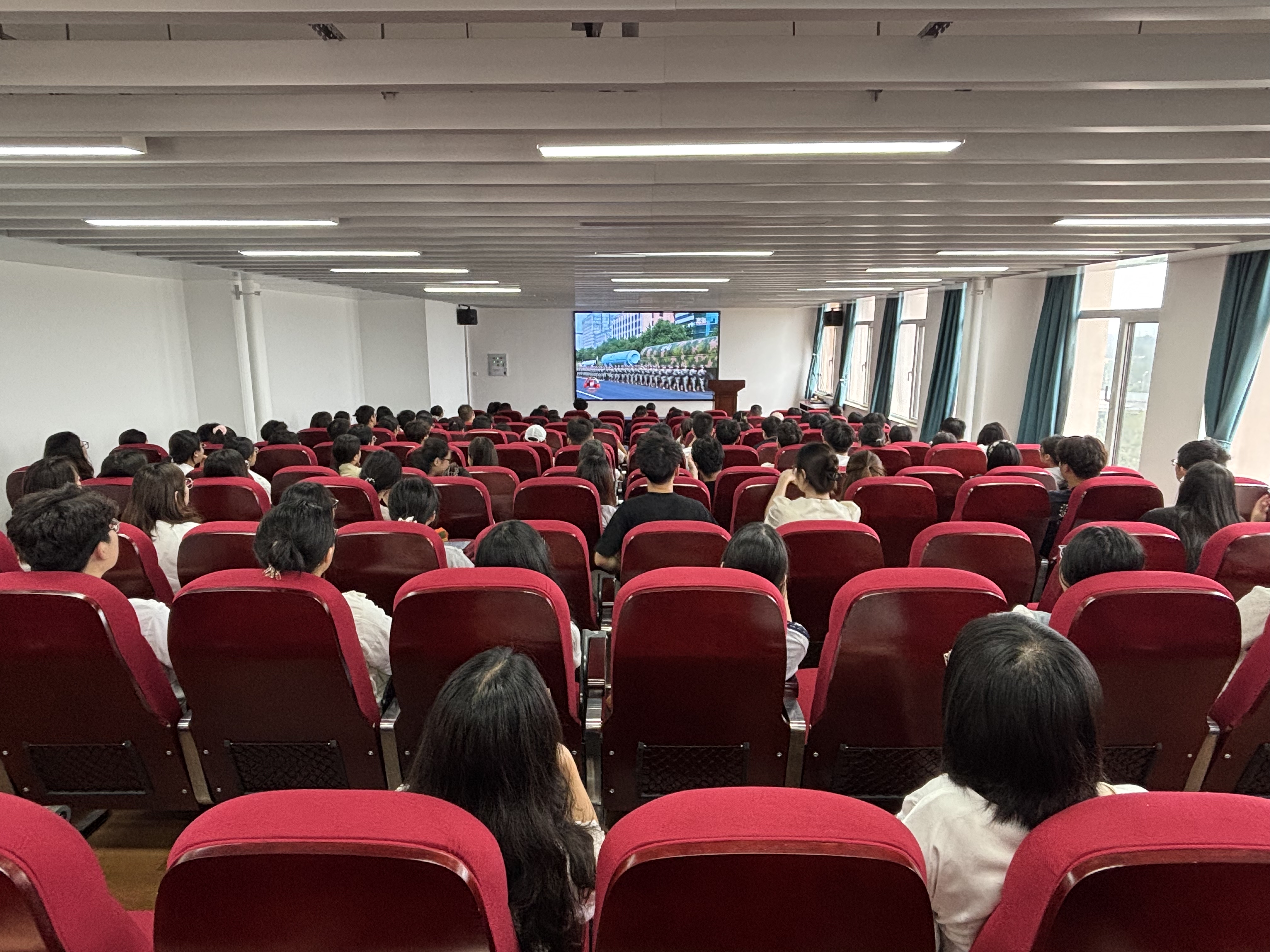 直播过程中,师生们聚精会神,认真观看每一个环节。当看到盛大的阅兵仪式、听到激昂的讲话时,现场不时响起热烈的掌声。大家被革命先辈们为国家和民族利益浴血奋战的精神深深打动,也为祖国如今的繁荣强大倍感自豪。