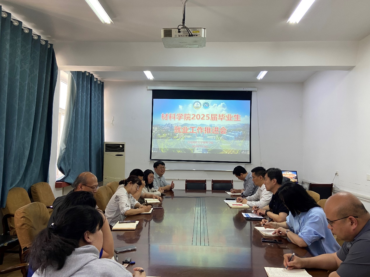 为全力促进2025届毕业生高质量充分就业,5月20日下午,材料学院召开2025届毕业生就业工作推进会。材料学院党委书记孟照国、党委副书记兼副院长葛夫国、副院长孙瑞雪出席本次会议,各教研室主任、本科毕业班班主任、研究生导师代表、毕业生辅导员参加。会议由孟照国主持。