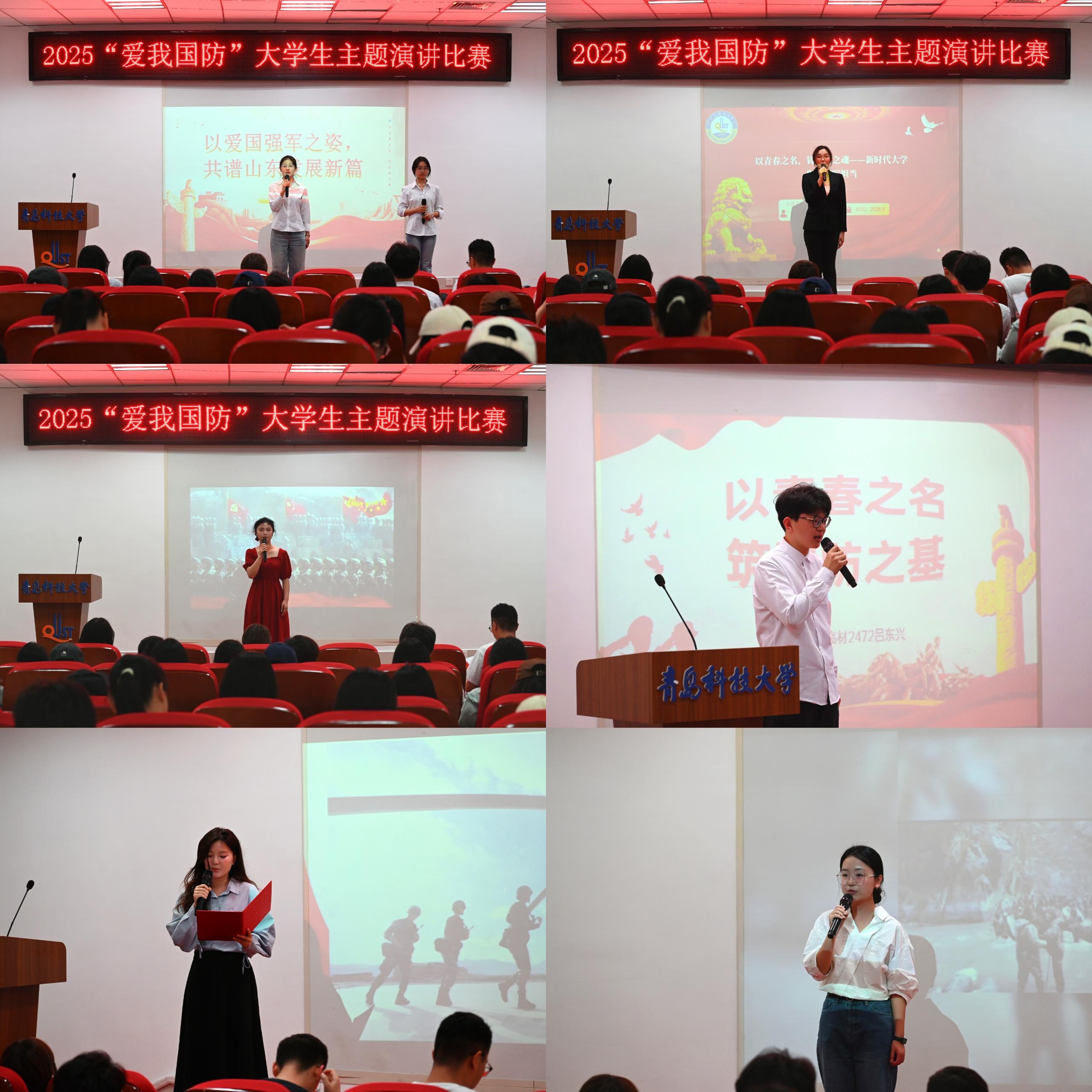 比赛采用线上线下相结合的方式,经过前期评选,共有9组选手入围线下决赛。他们采用背景视频、多人组合等多种形式,结合自身经历、时事热点,兼顾国际视野,以铿锵有力的声音抒发着爱国情怀,并引导广大青年学生铭记历史、居安思危,让爱国热情在青年学生心中落地生根。比赛在《中国人民解放军军歌》落下帷幕。本次比赛共产生一等奖两名,二等奖两名,三等奖三名,优秀奖两名。其中,前两名将推荐到学校参加校赛。