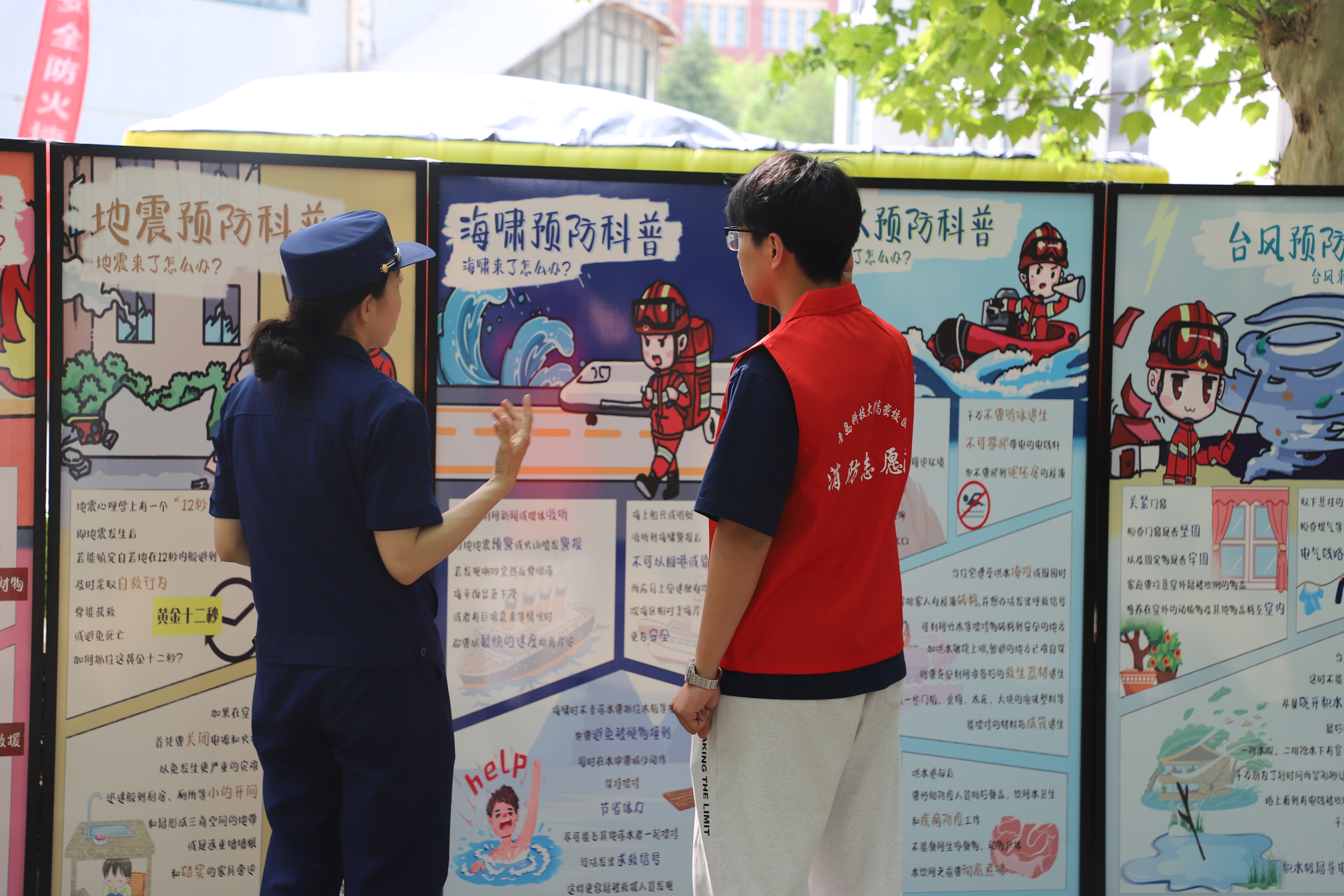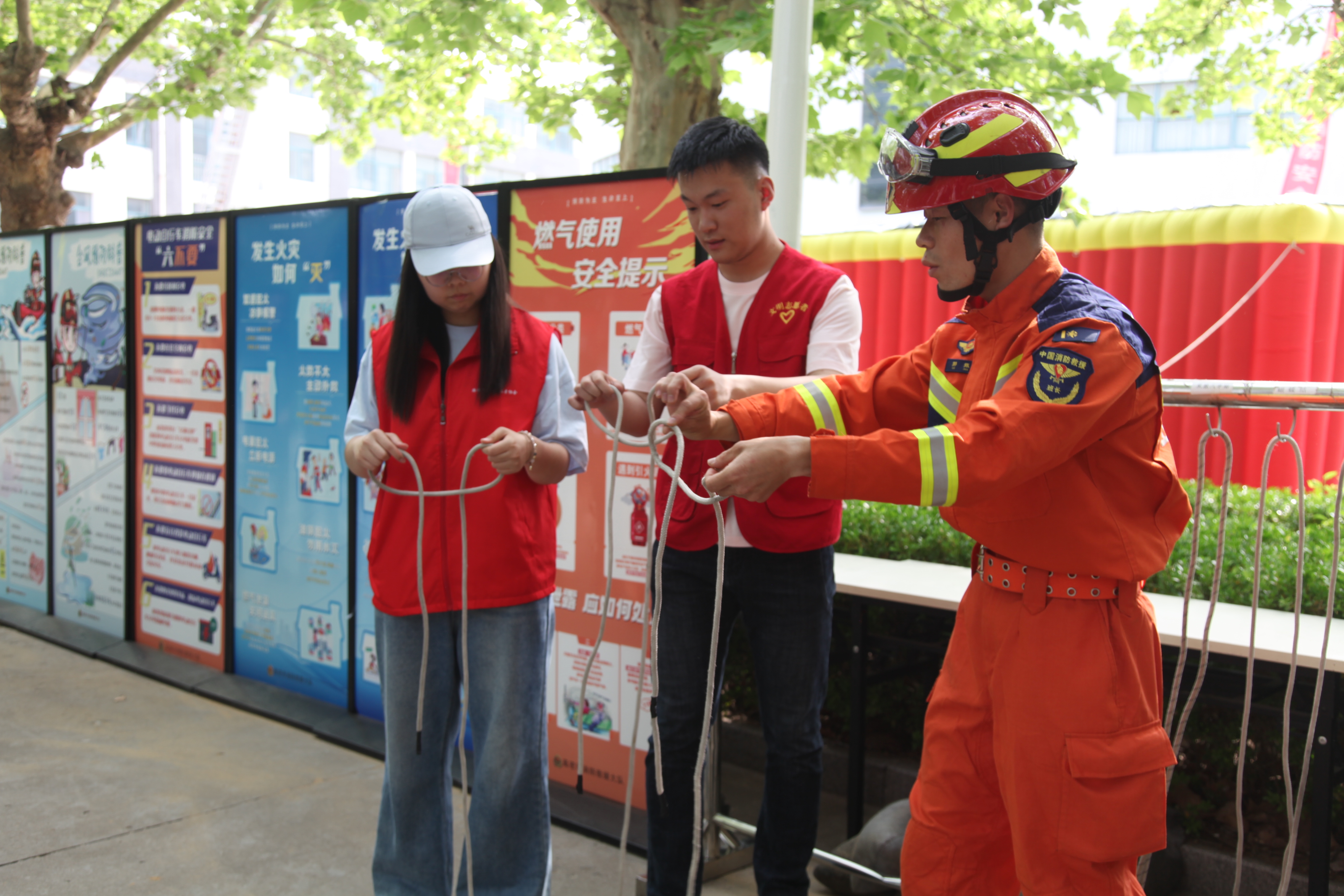 消防科普嘉年华环节,消防车辆展示区吸引众多学生参观体验云梯消防车等特种装备;消防科普互动区通过互动游戏等普及消防知识;消防逃生演练区,模拟灾害场景,帮助师生掌握逃生自救技能。