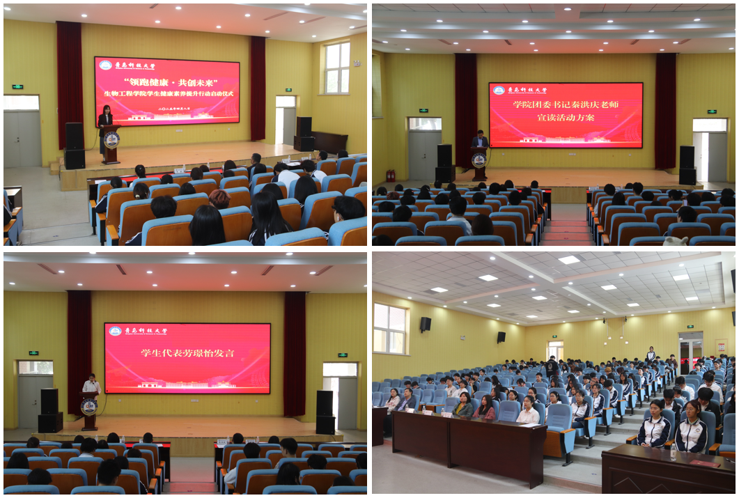 为深入贯彻习近平总书记关于健康中国建设的重要论述,落实国家体重管理年工作部署,推动学生全面发展与健康生活深度融合,实现全员全过程全方位全环境立德树人,4月8日下午,生物工程学院在尚舜报告厅举行“领跑健康,共创未来”学生健康素养提升行动启动仪式,校医院纪永丽医生、学院党委副书记刘浩、学工办主任秦洪庆及全体辅导员、学生代表参加启动仪式,仪式由学院学工办副主任刘金岭主持。