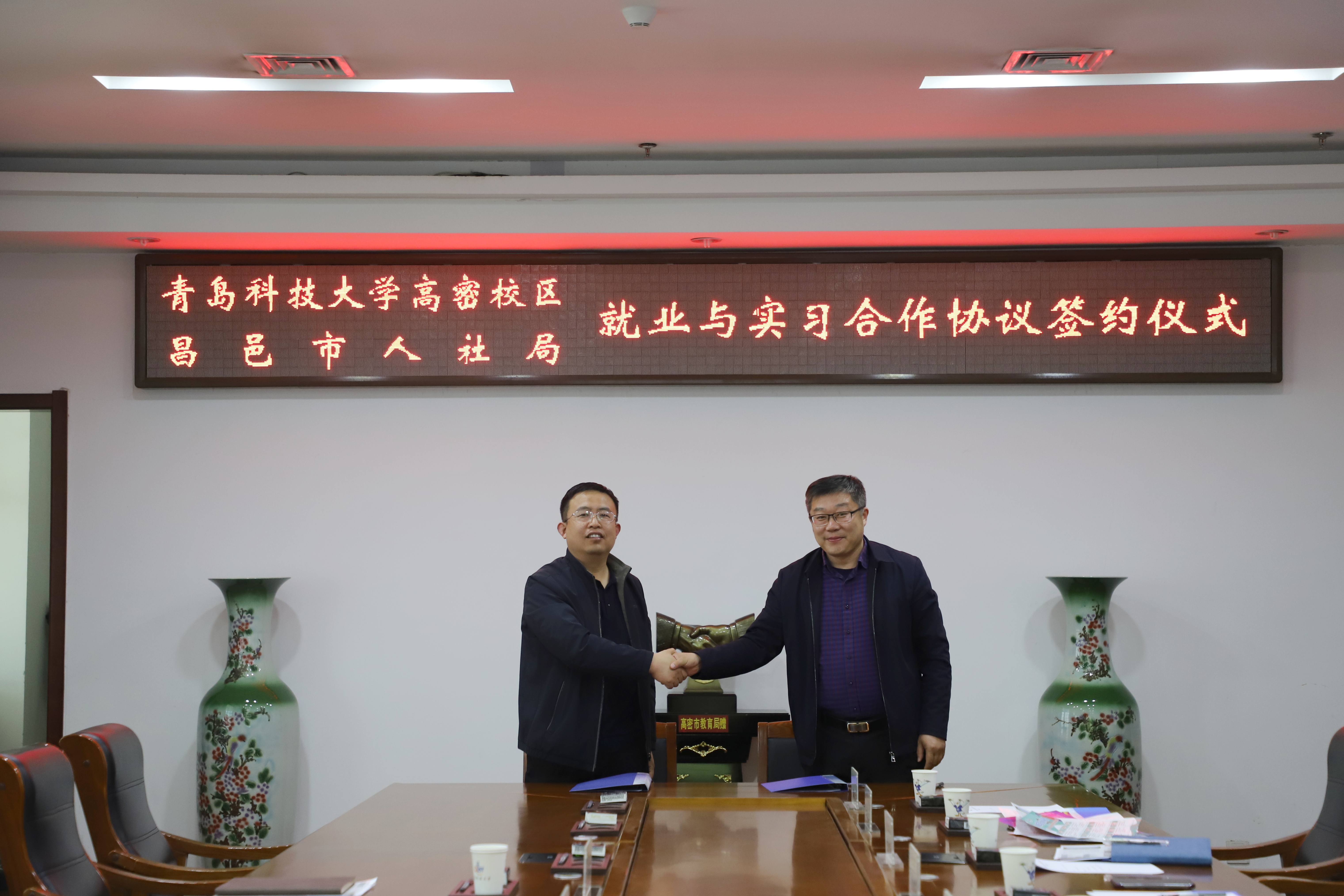 高密校区与昌邑市人社局签署就业实习合作协议