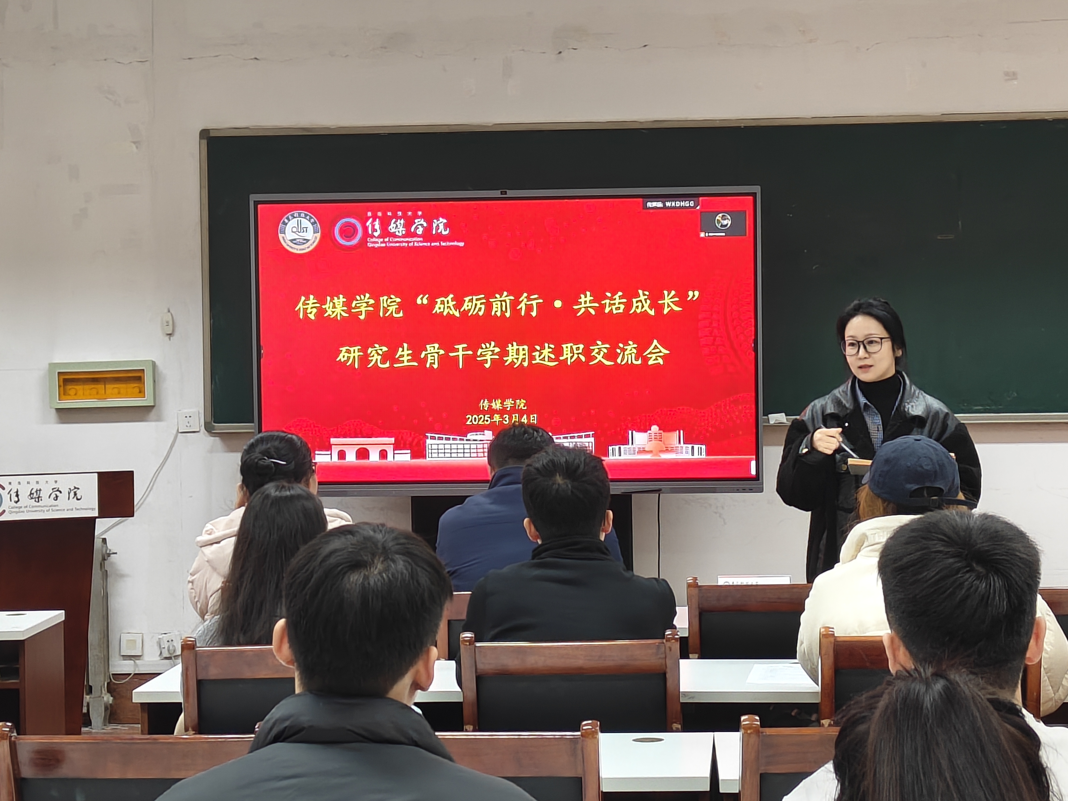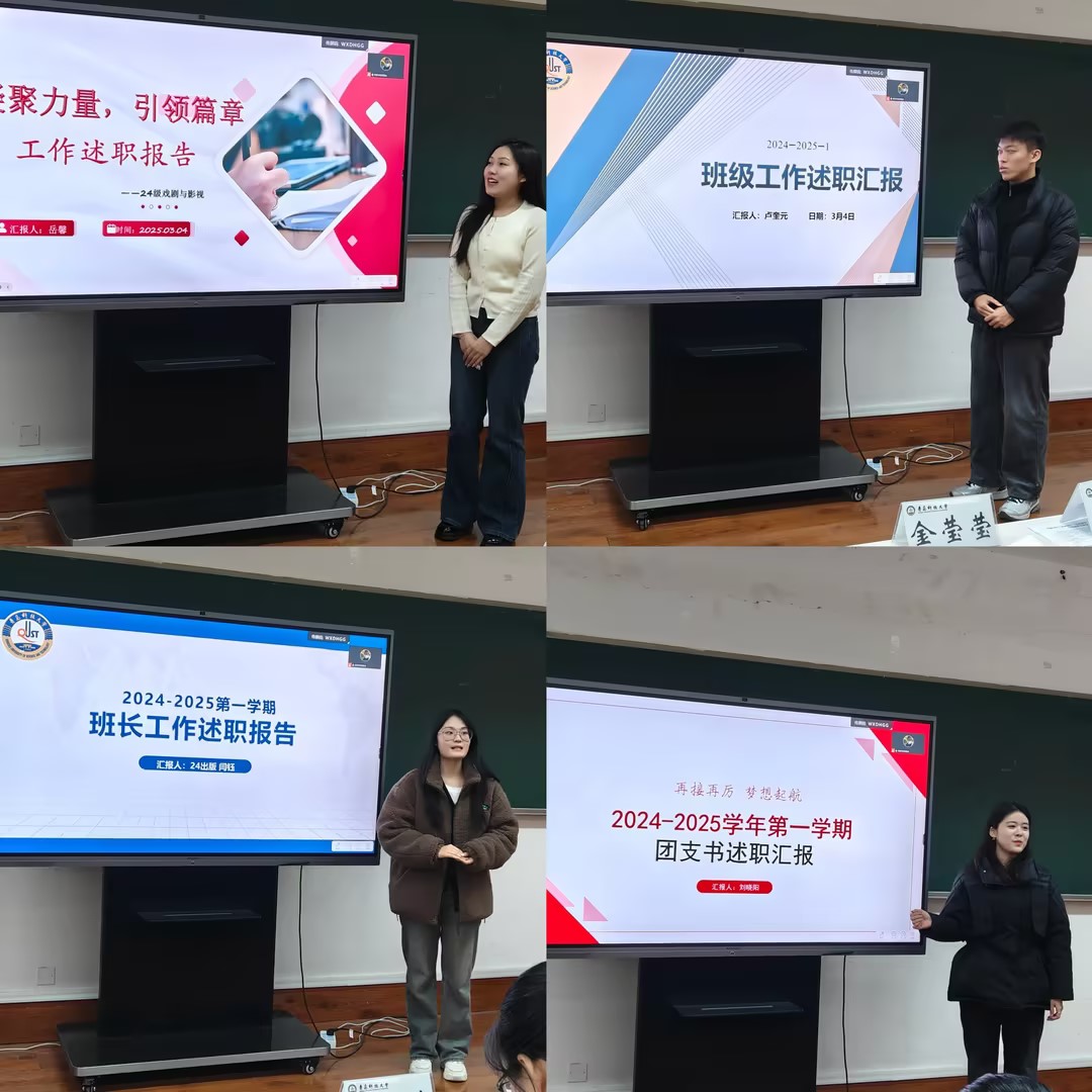 与会研究生班委围绕上一学期开展班级工作、服务同学,存在问题不足和下步计划举措,依次进行分享交流,聚焦日常班级管理、学术科研、讲座报告和宿舍内务卫生等重点工作进行系统梳理,通过PPT展示报告,为学院发现、培养和选拔优秀研究生骨干提供了支撑,为提高传媒学工质量奠定坚实基础。