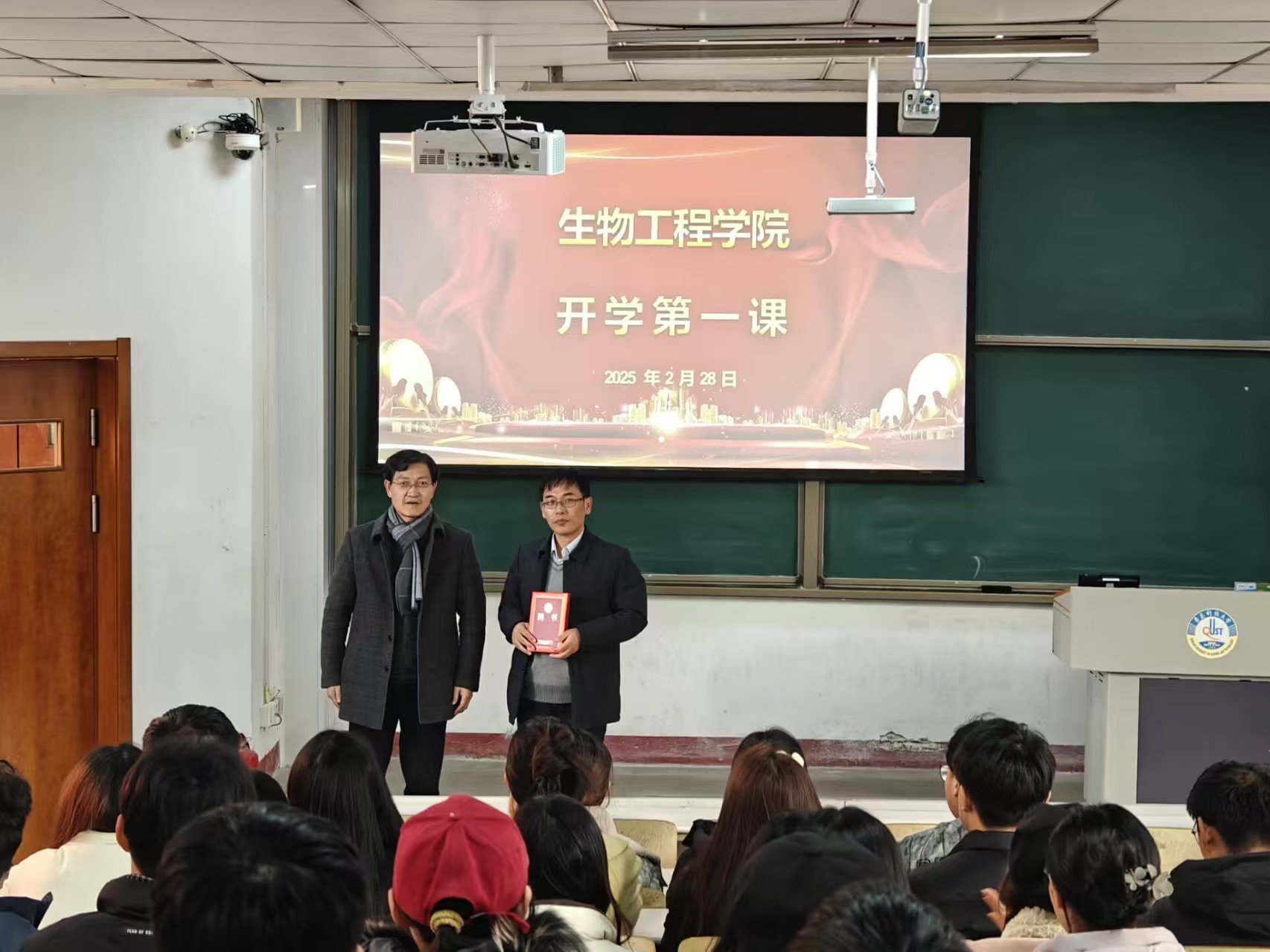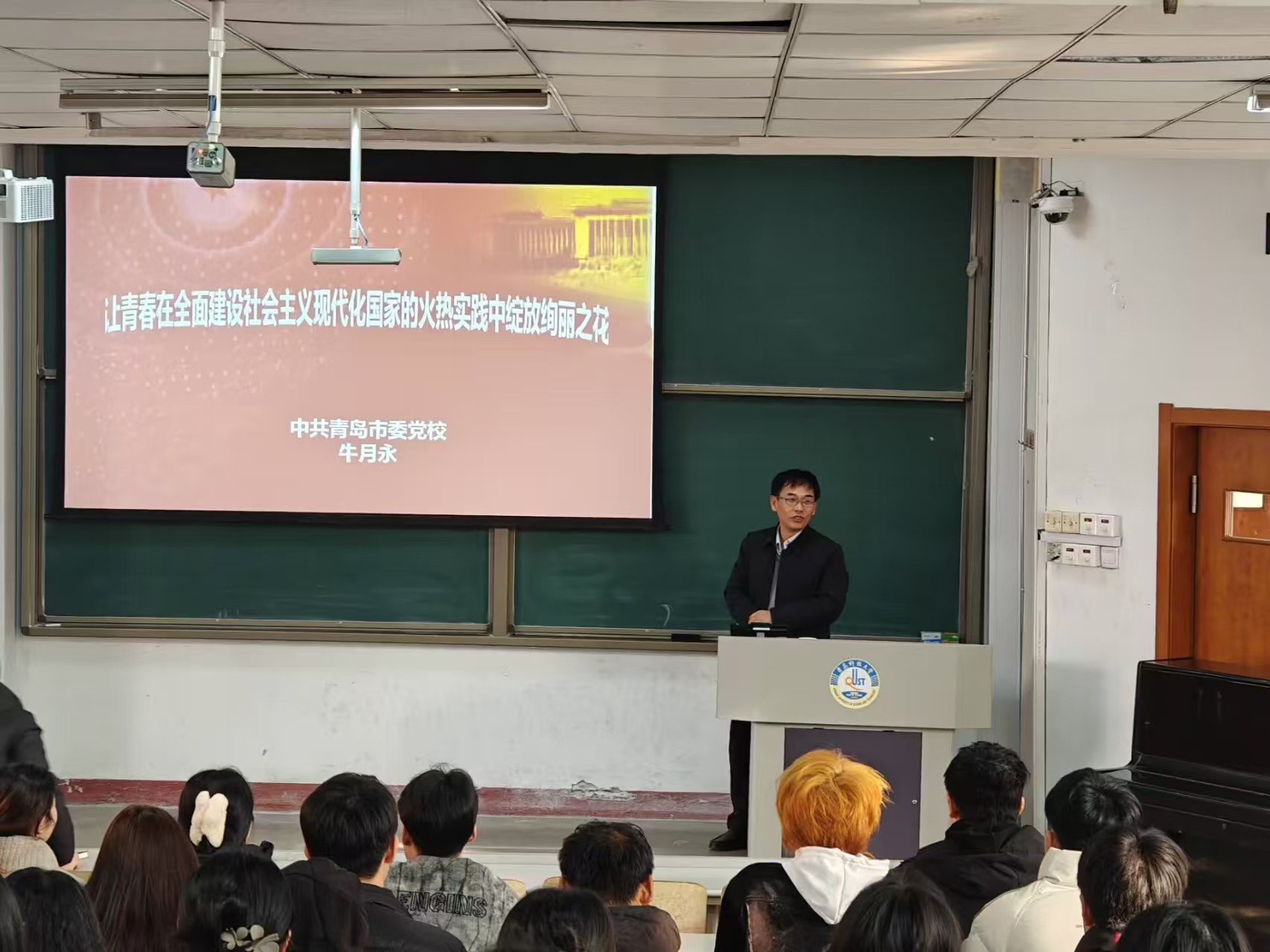 2月28日,生物工程学院在2教111教室开展新学期“思政第一课”,邀请中共青岛市委党校中共党史党建与党性教育教研部副主任、副教授牛月永作了《让青春在全面建设社会主义现代化国家的火热实践中绽放绚丽之花》专题报告。生物工程学院党委书记周宪锋、党委副书记刘浩、全体辅导员,学生干部、学生党员以及入党积极分子代表参加此次会议。会议由刘浩主持。