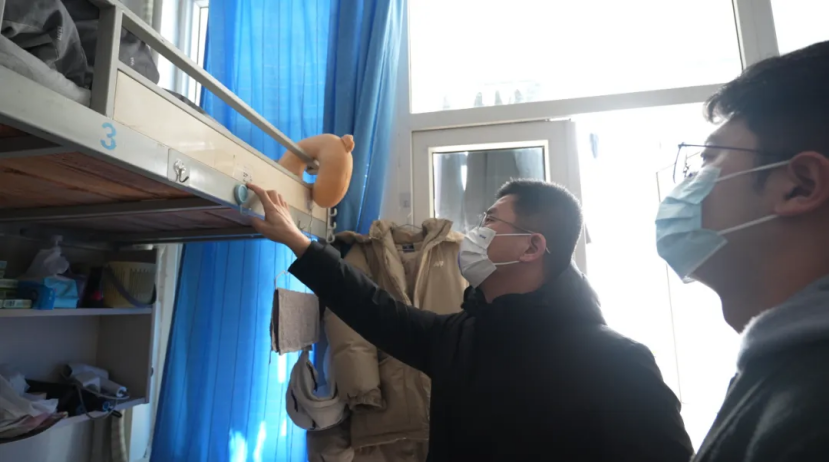 在学生宿舍,老师们检查了宿舍的卫生和安全状况,提醒同学们要注意个人卫生,保持宿舍整洁,避免流感,遵守学校的各项安全规定。此外,老师们还了解了同学们的饮食习惯和作息规律,鼓励他们要保持良好的生活习惯,确保身心健康。