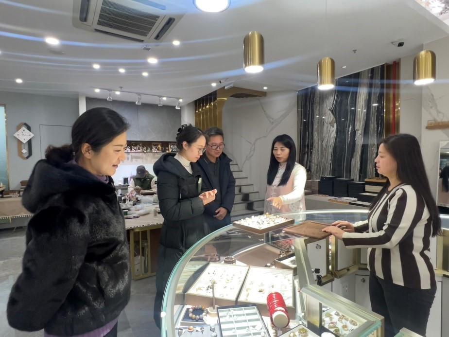青岛魅羽工艺品有限责任公司总经理何睿文对来访的师生表示欢迎,并对公司的发展历程、业务板块和基本情况进行了介绍。丁一宁一行实地参观了工作室、展品区和办公室等地,了解到设计、生产、营销等环节,感受企业文化氛围。双方就人才培养体系和培养模式进行讨论,将充分发挥双方的资源优势,就深化校企合作达成初步意向。