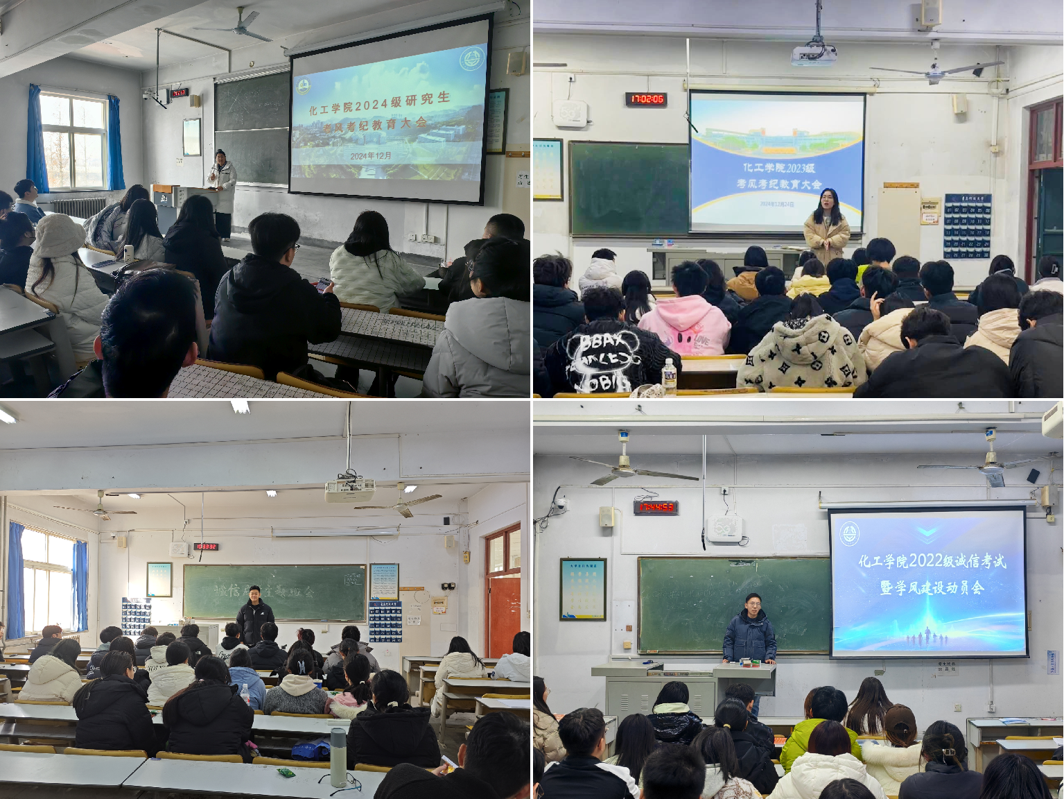 为深入推进学院学风建设行动计划,抓实学风涵养建设行动,加强考风考纪教育,增强学生诚信意识,营造良好的考试氛围,确保考试的公正性与严肃性,化工学院于12月23日-12月27日集中组织开展2024年秋季学期考风考纪教育主题活动,活动由各年级辅导员主持,学院全体学生参与。