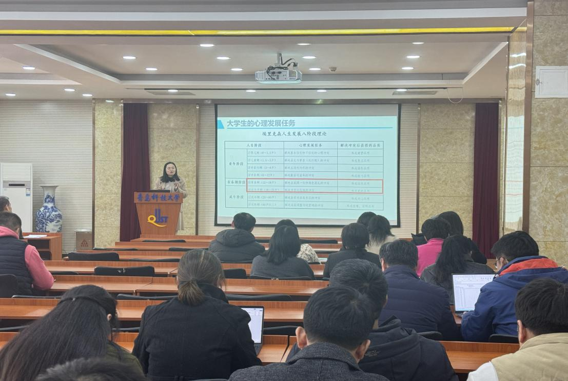 为加强学生思想政治工作体系建设,强化心理育人质量,为学生提供有效的心理健康指导,营造全员育人良好氛围。12月17日,信息学院在402报告厅开展班主任、导师心理专题培训。本次培训由学校心理健康教育与咨询中心专职教师殷华敏主讲,信息学院全体班主任、导师参加。培训由学院党委副书记兼副院长严增兴主持。