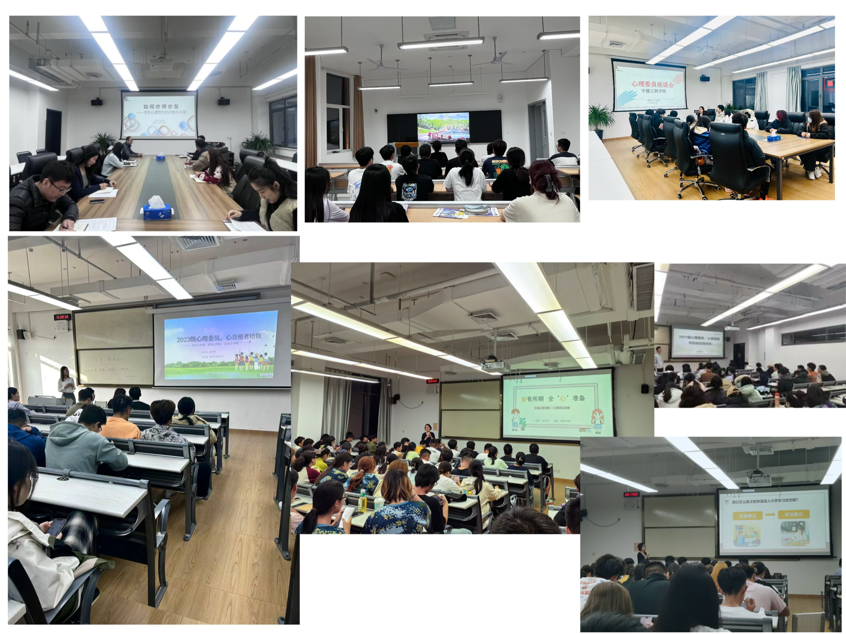 创新拓展,多元增效。启智润“心”,扬帆起航,学院着力打造“心理第一课”心理工作品牌,面向不同年级开设专题心理讲座,通过 “赶跑焦虑” “幸福生活”等专题讲座,不断沁润学生心田;以讲座、培训、沙龙、读书会为载体,加大班主任、心理委员、心音使者等心理工作队伍的培训力度,夯实心理健康知识,增强工作技巧。