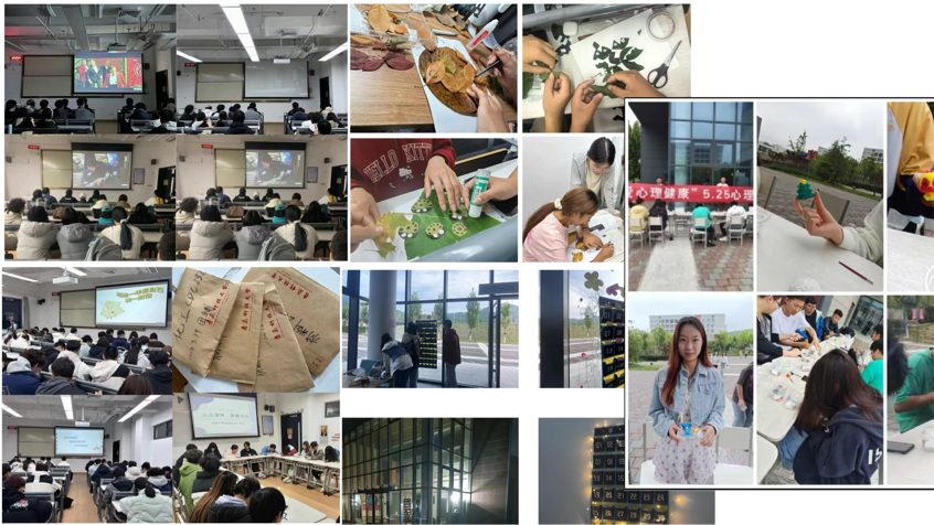 播撒“心”种,启迪“心”灵,学院以“全年不断线、月月有活动”为目标,头筹推动心理工作体系化服务、特色化发展。在心理健康咨询中心的指导下,构建起成熟的 “25·以爱之名”心理健康教育活动矩阵,每年开展“定格校园”心理摄影展、“心悦读”心理读书会、“我为毕业班送祝福”毕业季心理健康活动、“音乐与心灵的碰撞”DIY黑胶唱片、心理情景剧、心理手语操等10余项特色活动,关心呵护学生心理健康,促进学生全面健康成长。