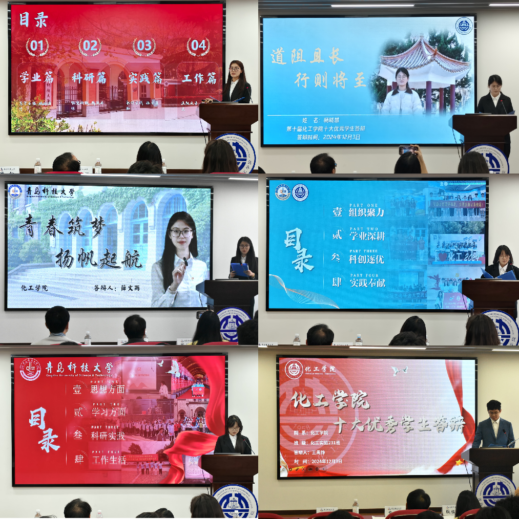 此次“十大优秀学生”评选活动为学院的优秀学生提供了展示自我的平台,是学院全面落实立德树人,切实推进三全育人和五育并举的重要举措。接下来学院将进一步发挥榜样的示范引领作用,激励和引领广大化工学子努力成为德智体美劳全面发展的高素质创新人才。