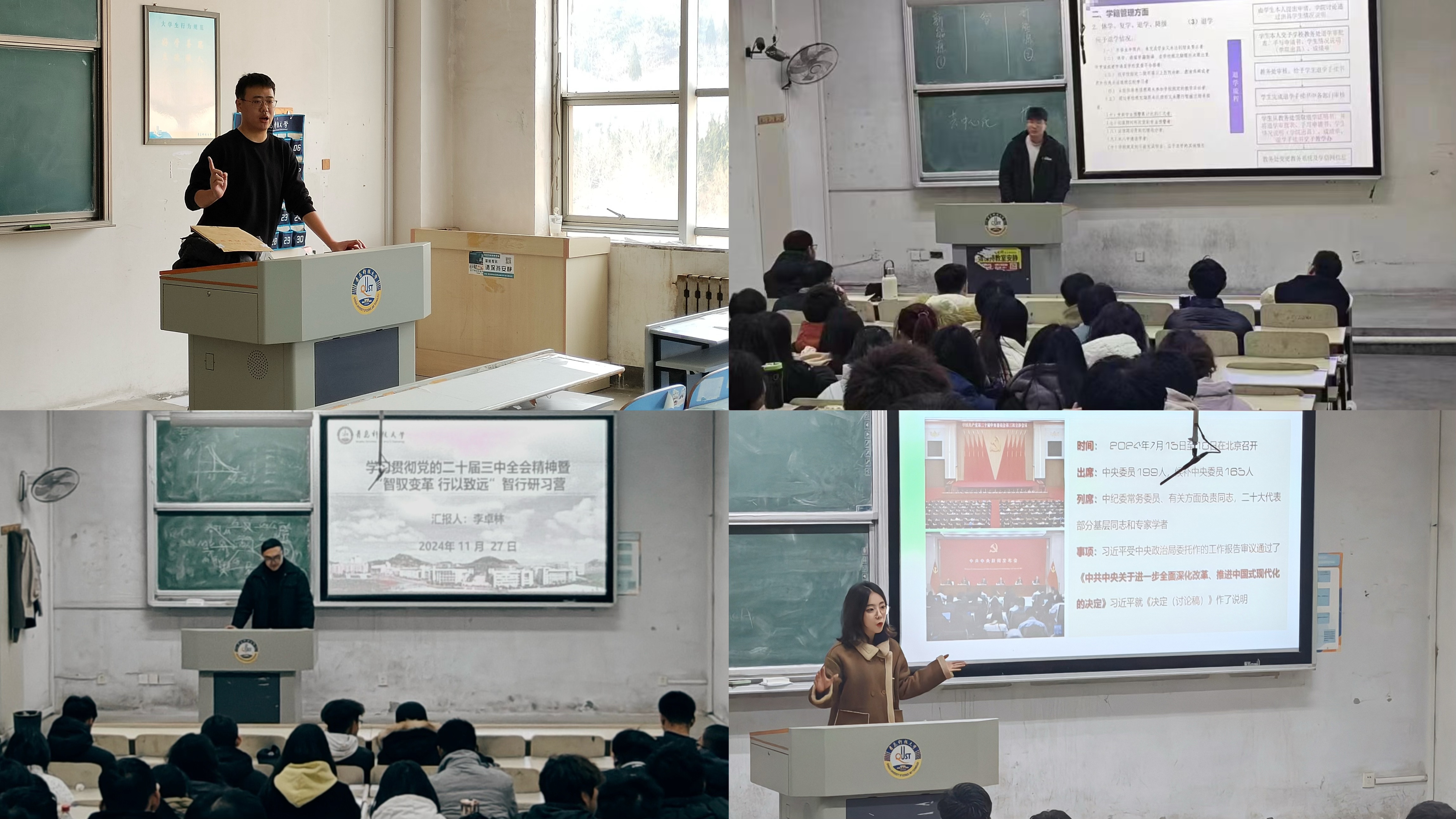 会上,各年级辅导员深入阐释了党的二十届三中全会精神要义,详细介绍了学院的发展历程与现状。重点解析了一级学科博士点建设背景下学院学生工作的新任务与新要求,即秉持“选+培”的理念,明确“智行研习营”在选拔优秀人才的同时,更为注重学子全面发展与个性化培养;遵循“严+细”的原则,对当前学业中存在的问题进行了深刻剖析,审思学风建设的重要性,提出了具体措施以营造严谨治学、勤奋向上的学习氛围,切实把稳“科创教育”航向,力促理论与实践的深度融合,持续激发学生的创新活力与实践潜能;立足“广+稳”的维度,着重强调了行为文明与安全教育,借助系列生动案例与实用指导策略,引导学生树立安全意识,养成文明习惯。结合各年级学生工作重点,对安全稳定、宿舍建设、就业工作、学科竞赛、健康跑、考风考纪等工作进行了安排部署。